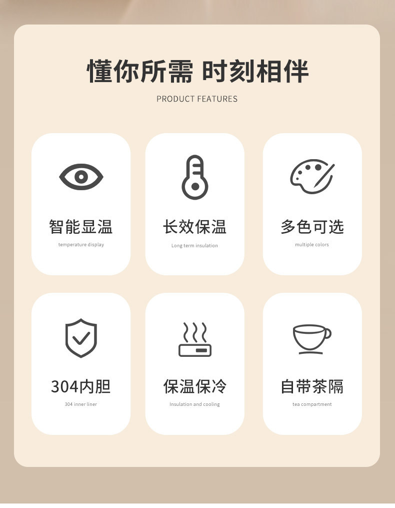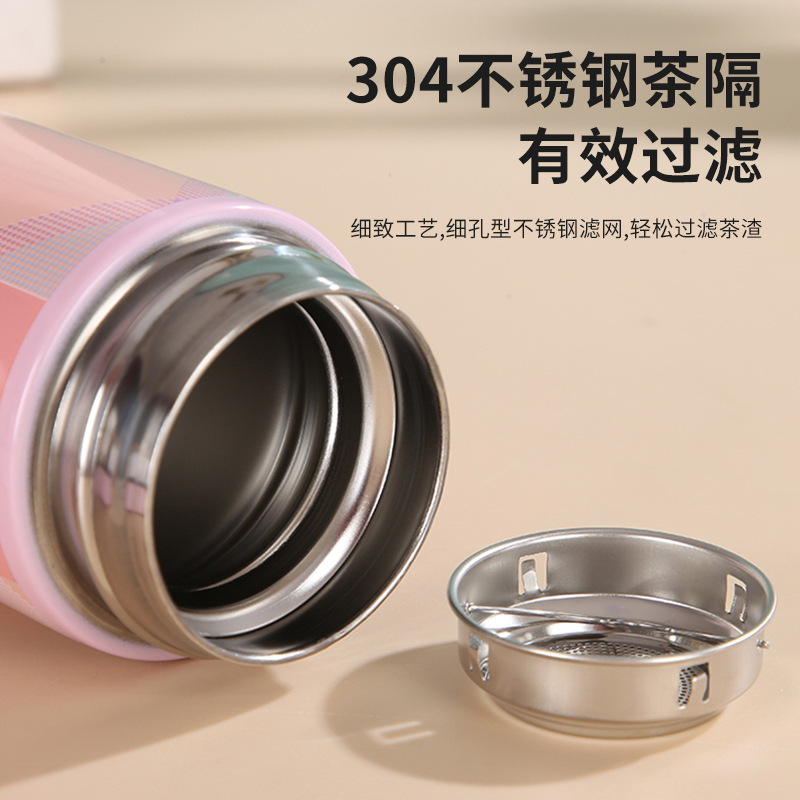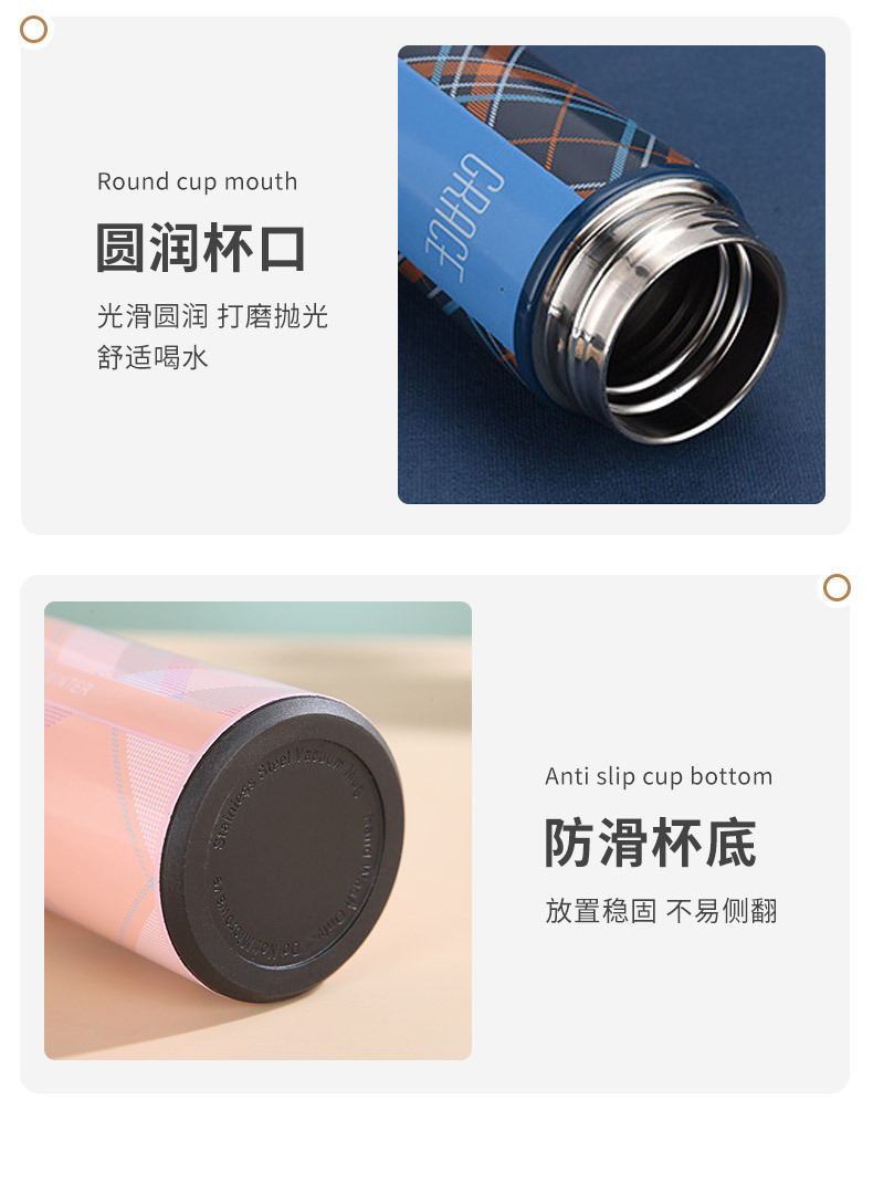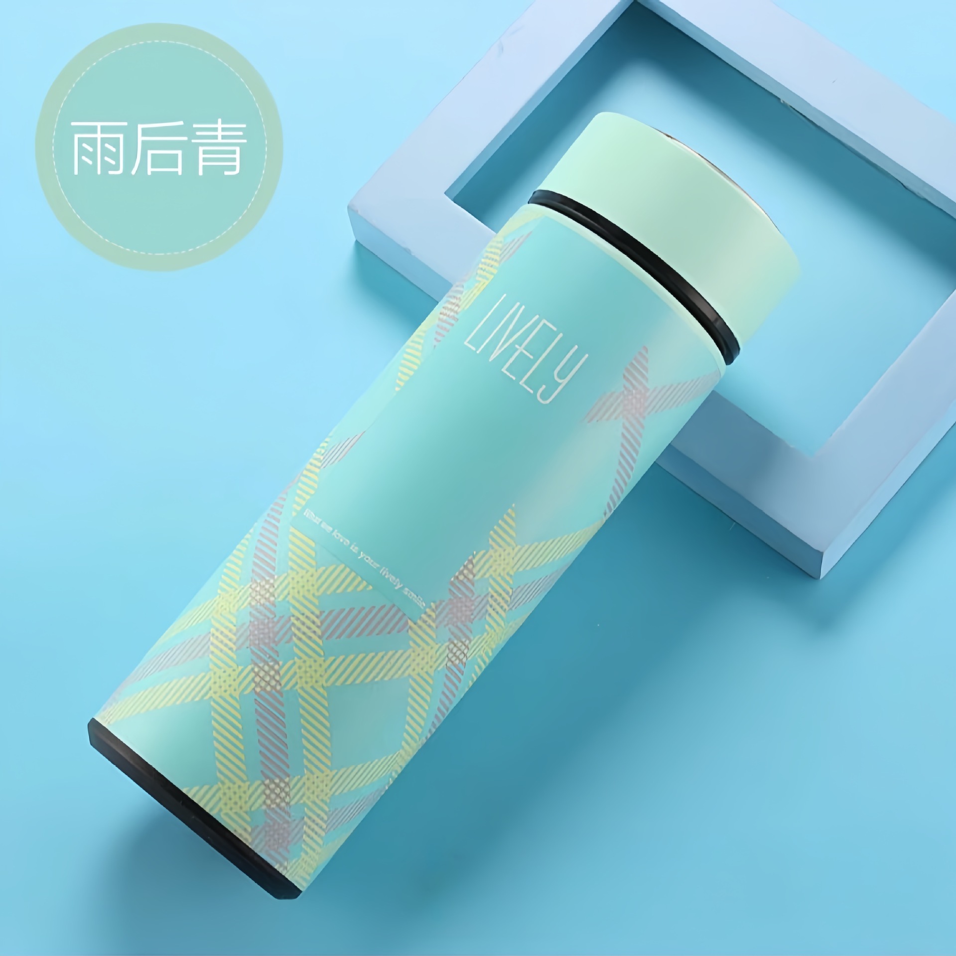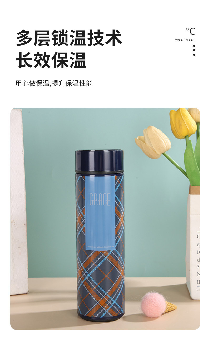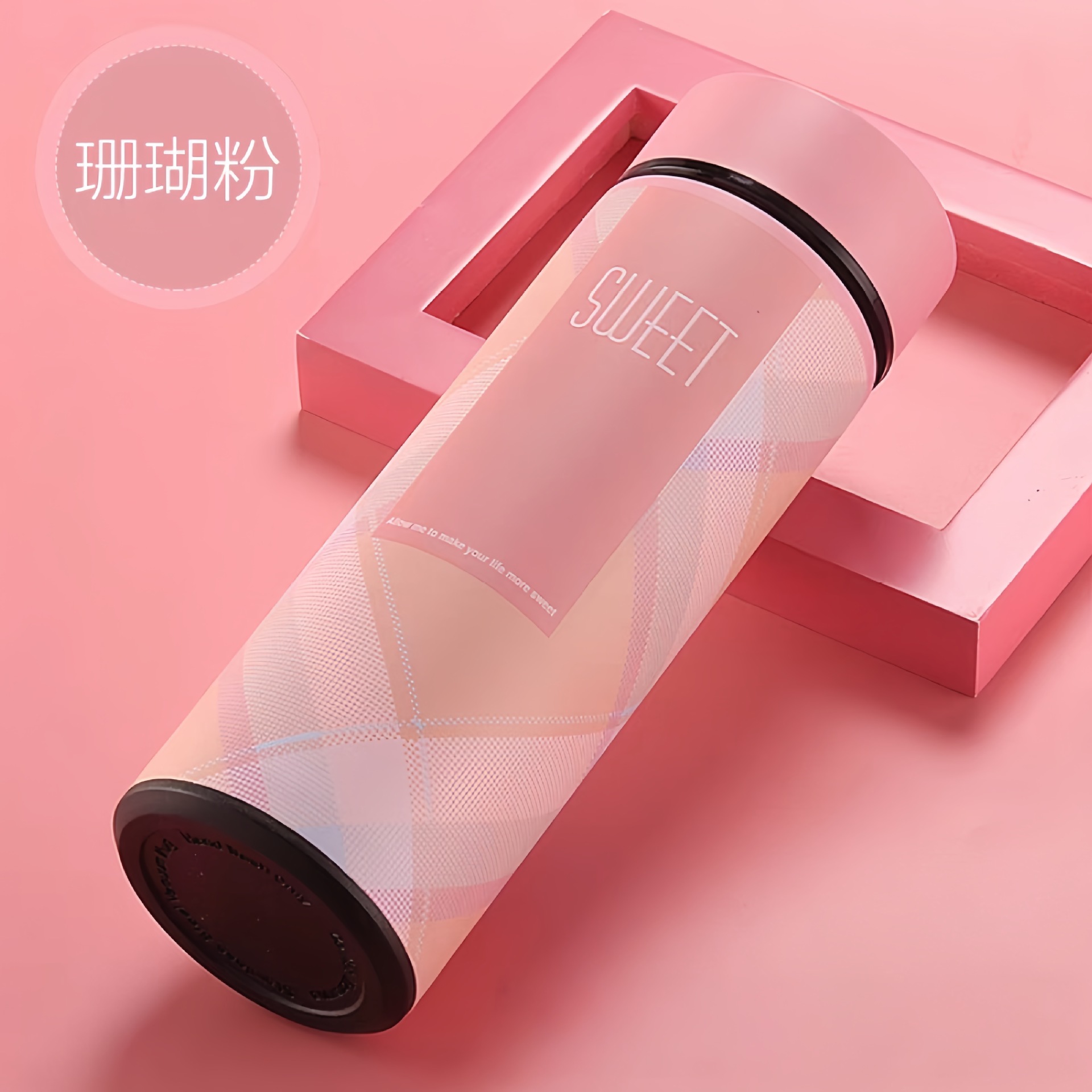 고급스러운 격자 무늬 스마트 온도 디스플레이 스트레이트 컵 304 스테인레스 스틸 진공 절연 컵 야외 휴대용 비즈니스 워터 컵