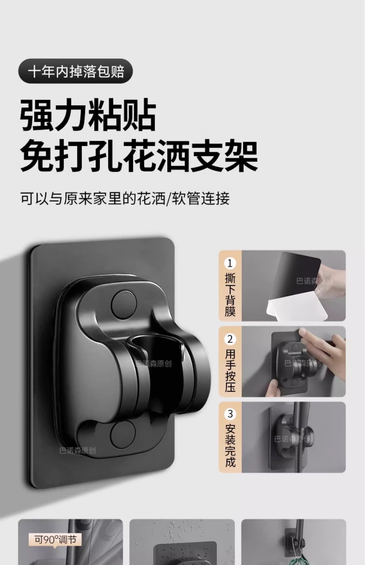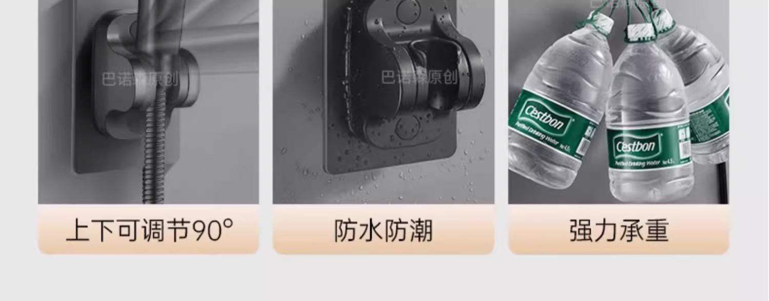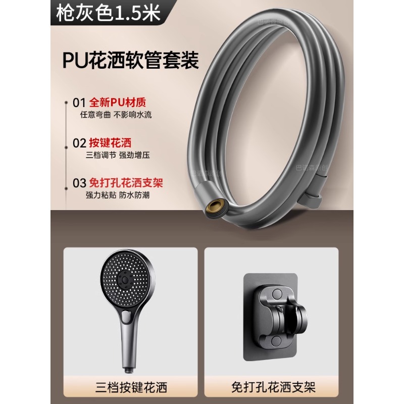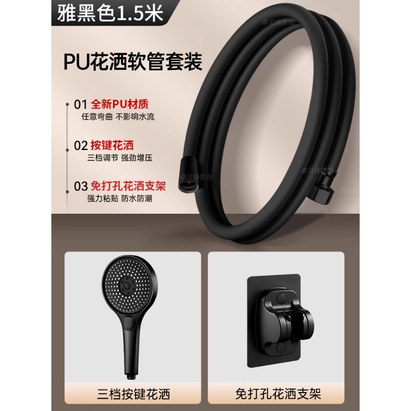 • [우아한 블랙 세트 ①] 1.5m 샤워파이프 + 대형 패널 버튼 샤워기 + 펀치프리 브라켓