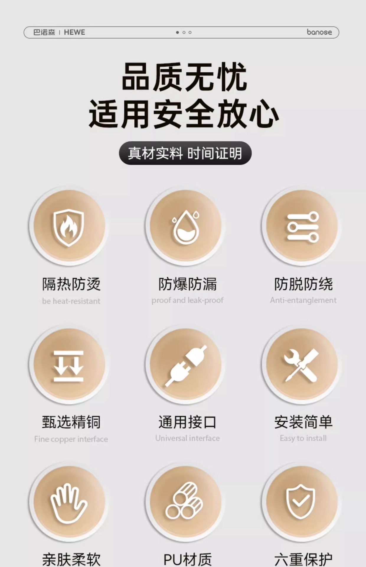 샤워기 방폭 호스 스프레이 노즐 범용 온수기 배출관 욕실 샤워기 연결관