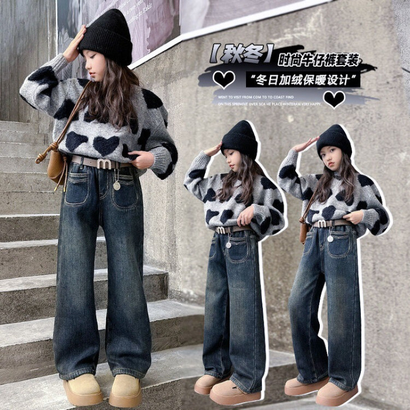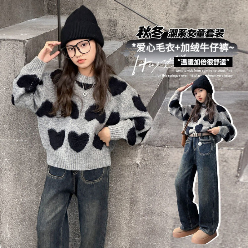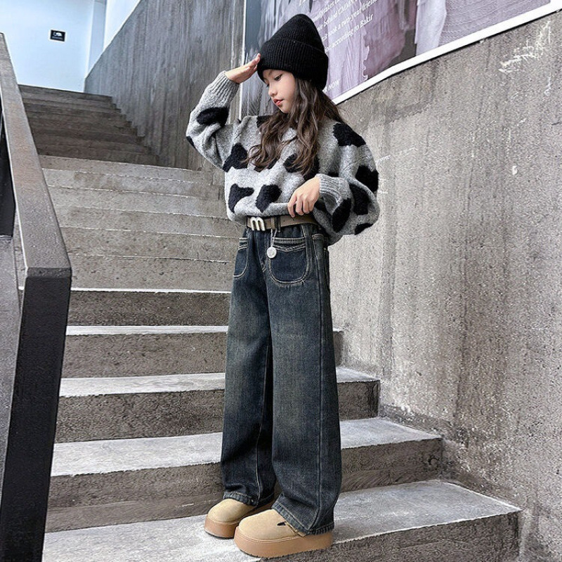 여아용 봄, 가을, 겨울 스타일 스웨터, 여아용 하의 셔츠, 중대형 아동용 두꺼운 니트 패셔너블 탑스토어 가기