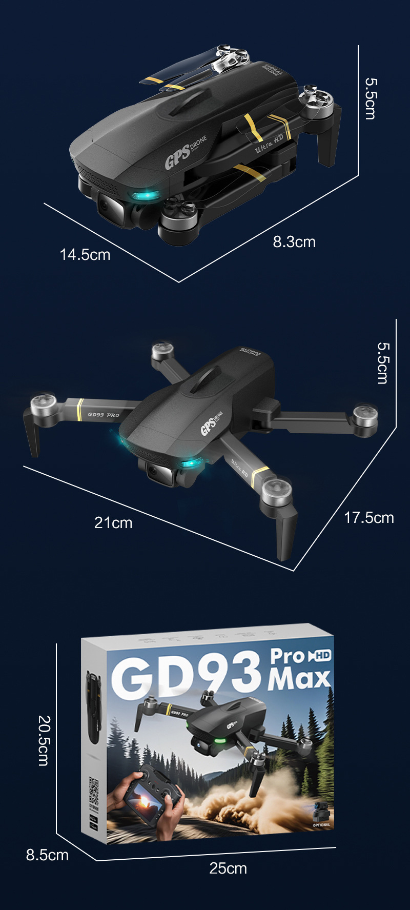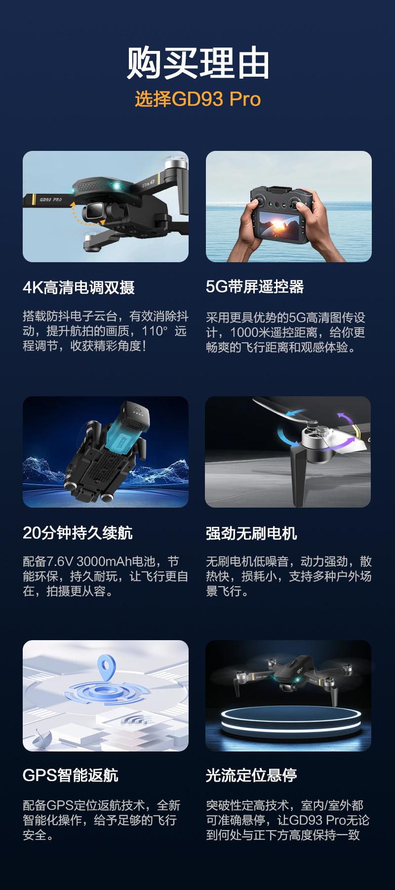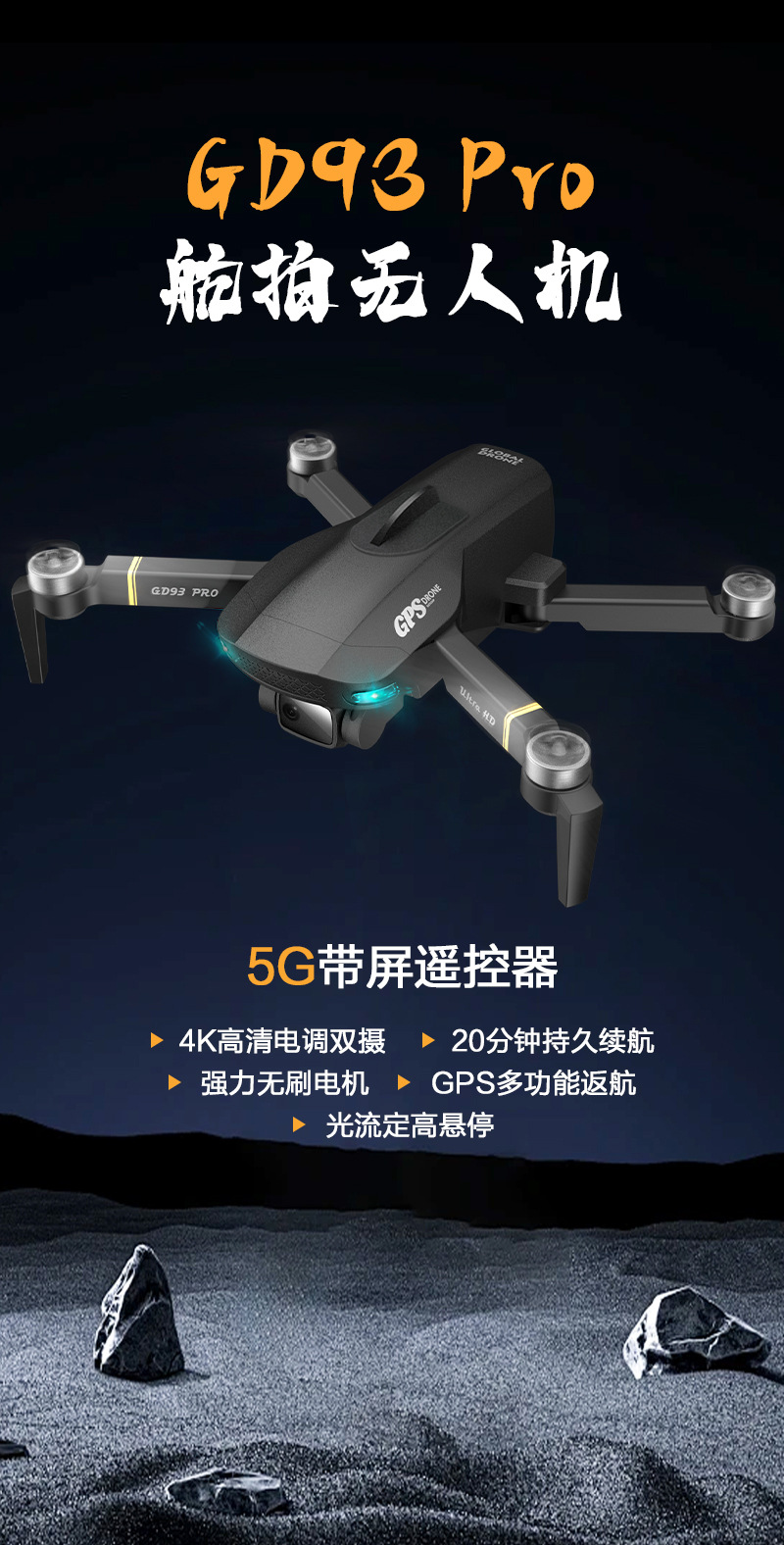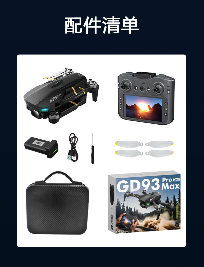 GD93promax 국경 간 신제품 대형 스크린 드론 GPS 포지셔닝 자동 반환 4차원 장애물 회피 HD스토어 가기