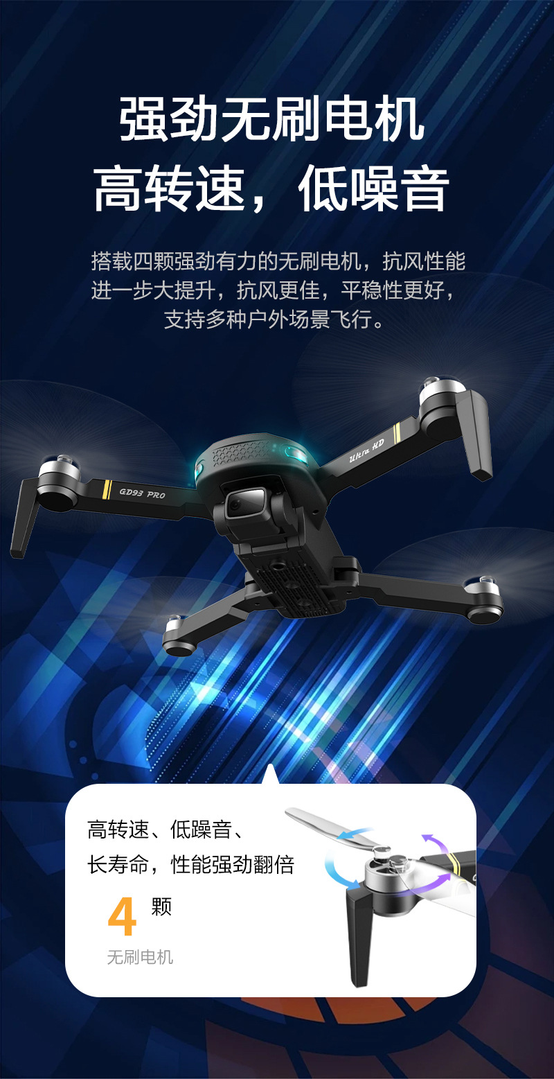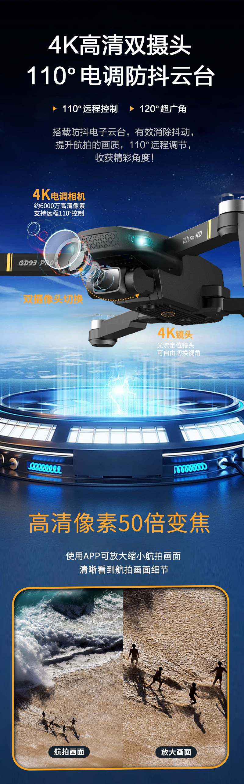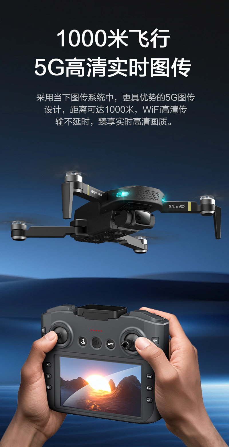 GD93promax 국경 간 신제품 대형 스크린 드론 GPS 포지셔닝 자동 반환 4차원 장애물 회피 HD스토어 가기