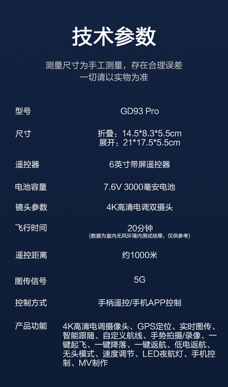 ( 本产品专供跨境及外贸出口,本页面所列出的各项参数,均为掌握该飞行器操作厂家技术人员在光照条件充足、无风、无干扰的室外空旷环境测得,属于实际测试得出的数据,并由生产提供。此数据在不同的外部环境,使用方式,固件版本下,结果或有不同程度的差异,请以实际体验为准)用方式,固件版本下,结果或有不同程度的差异,请以实际体验为准)