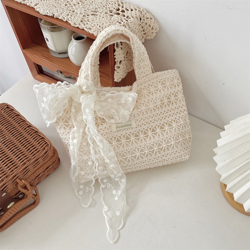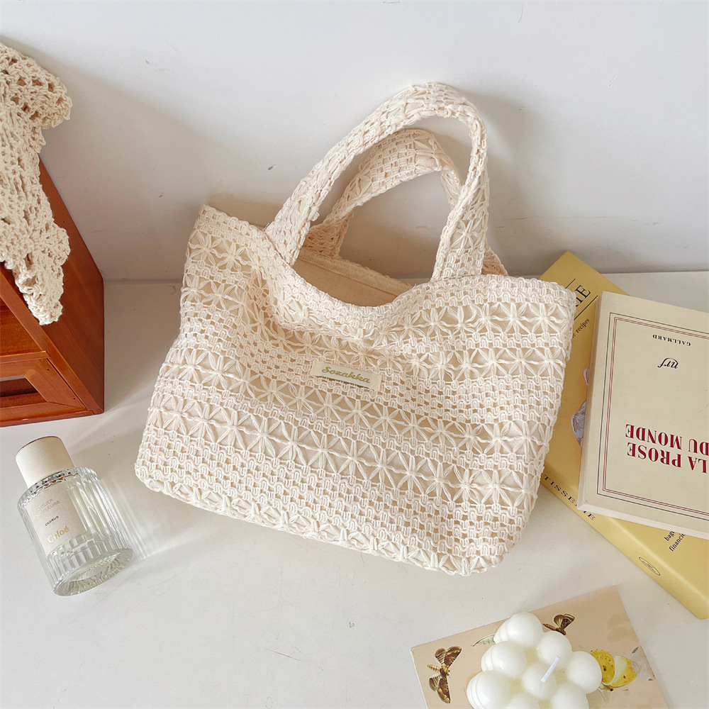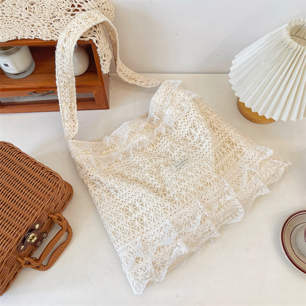56281 여름 캐주얼 휴가 숄더백 요정 레이스 캔버스 가방 대용량 토트 백 중공 비치 백스토어 가기