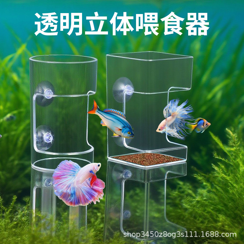 어항 피더, 물고기 먹이 공급 장치, 고정식 먹이 공급 장치, 원형, 사각형, 투명, 물고기의 흩어짐 방지 및 탁한 물 방지