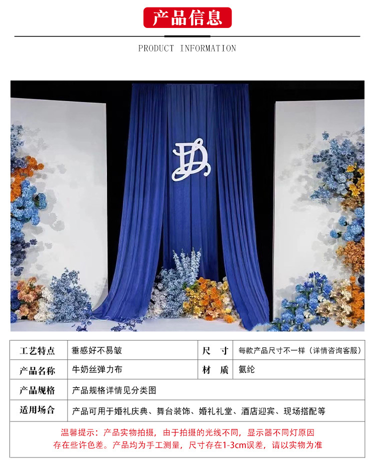 웨딩 천장 커튼 밀크 실크 스트레치 천 장식 천 블루 한국 웨딩홀 무대 배경 커튼