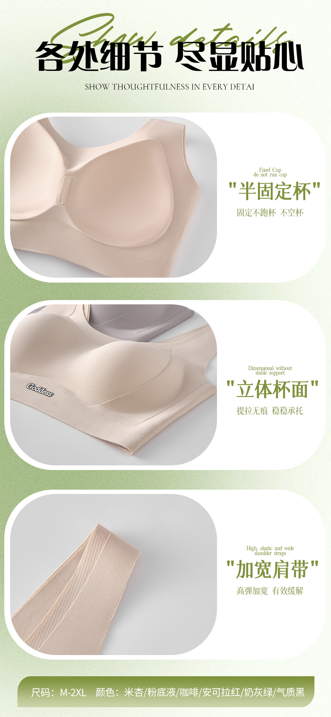 여성용 등이 아름다운 무봉제 브라, 고정컵, 노와이어, 푸쉬업, 스포츠, 작은 가슴, 통기성, 조끼형 브라
