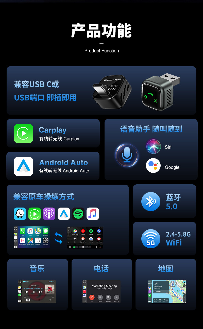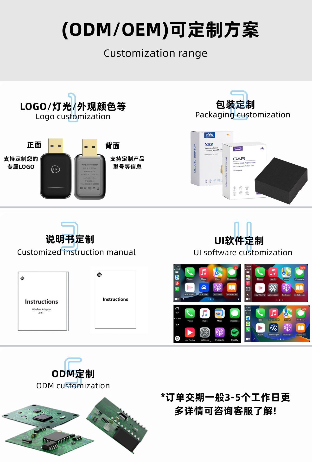 국경을 넘는 무선 카플레이 박스 스마트 차량 인터넷 연결 휴대용 카플레이오토 안드로이드 2-in-1 모듈