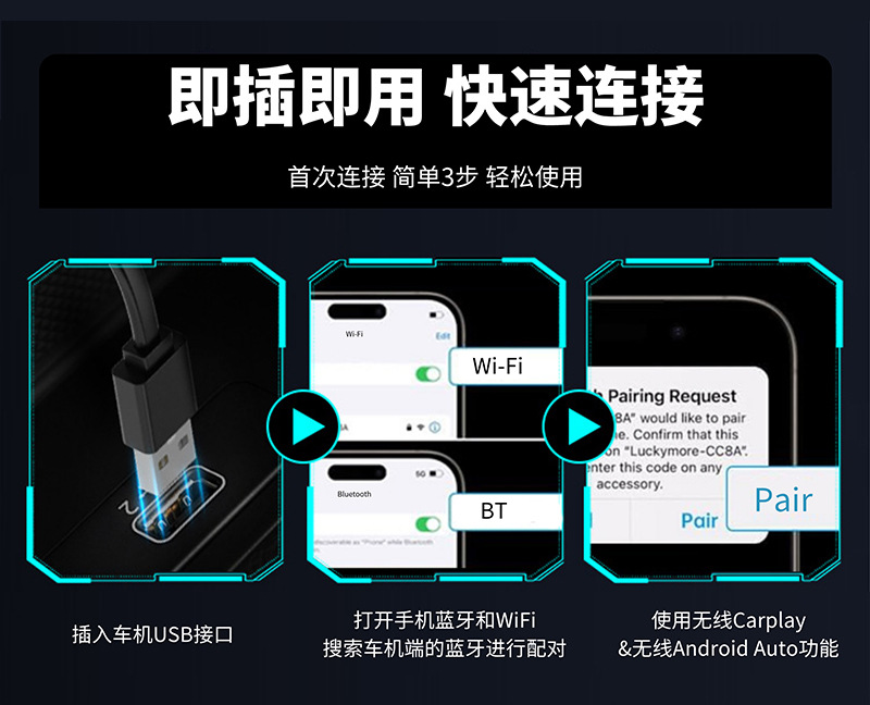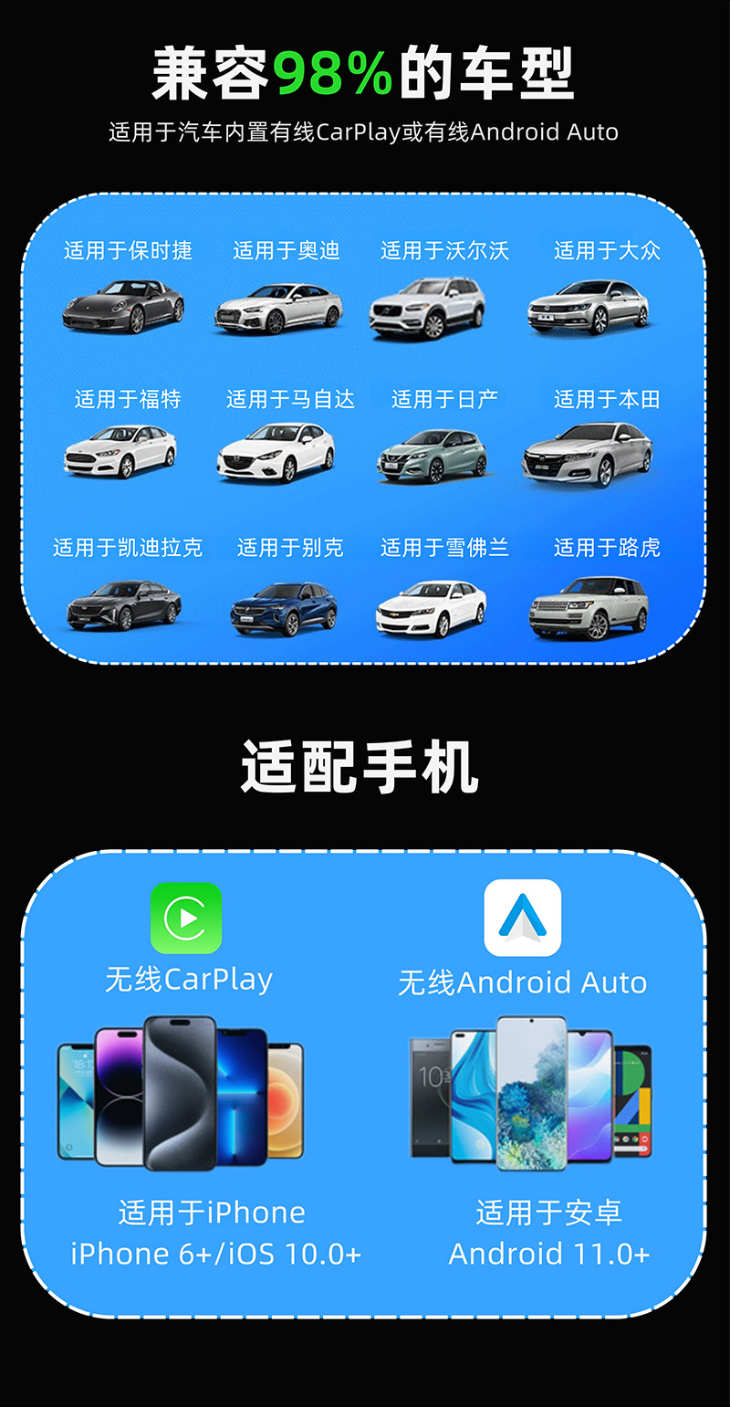 국경을 넘는 무선 카플레이 박스 스마트 차량 인터넷 연결 휴대용 카플레이오토 안드로이드 2-in-1 모듈스토어 가기