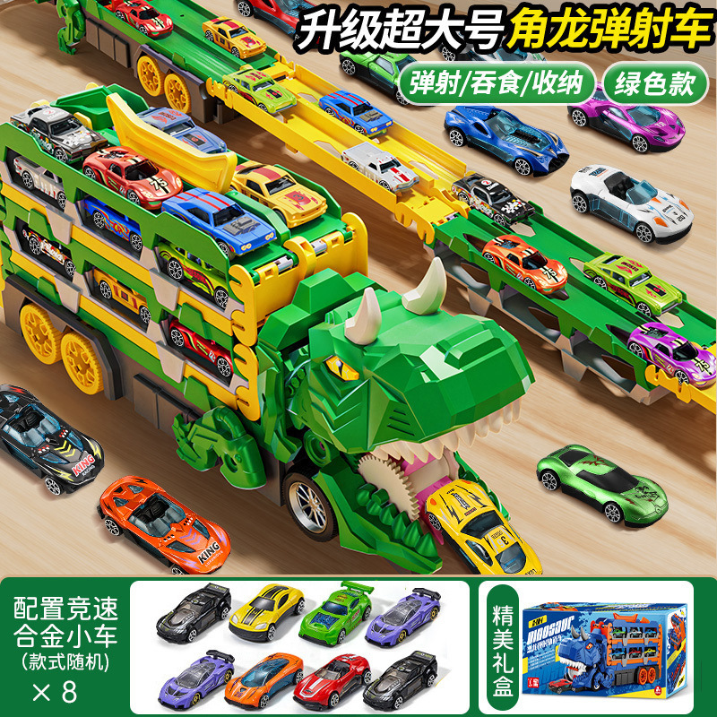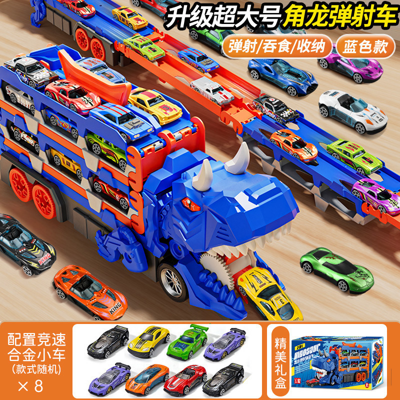 국경을 넘는 변형 공룡 삼키는 자동차 트랙 발사 자동차 장난감 게임 슬라이드 어린이 놀이 집 장난감 자동차스토어 가기