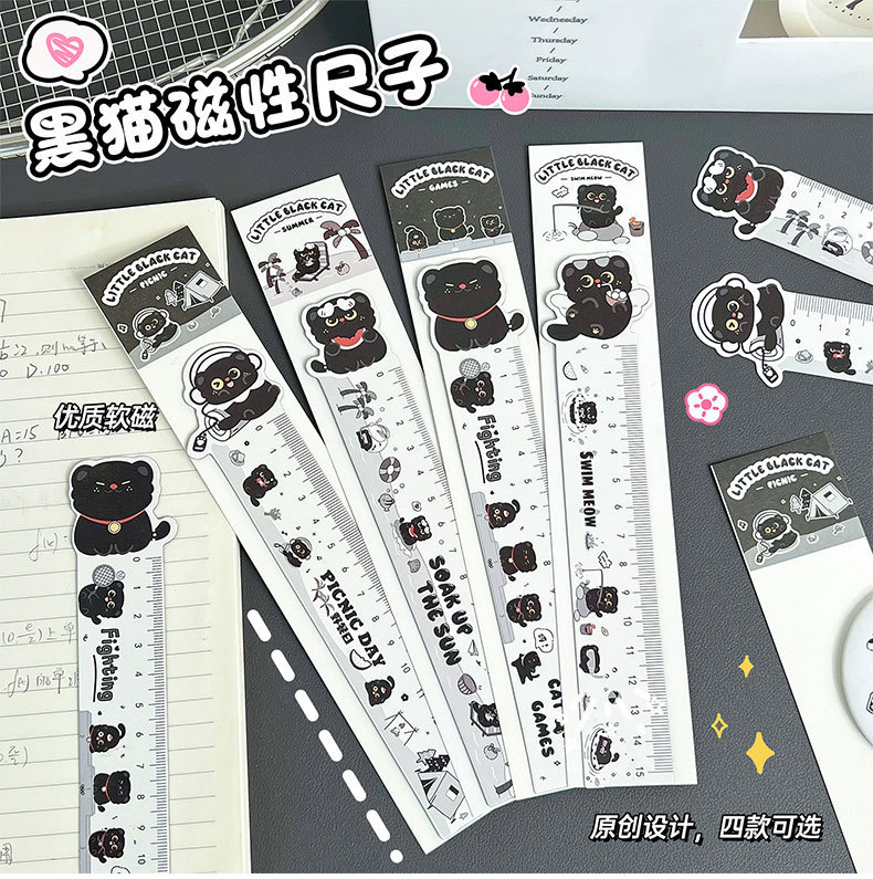 검은 새끼 고양이 자, 귀여운 자석 자, 학생들이 문제를 해결할 수 있는 특수 자, 수학 학습 측정 길이 자스토어 가기