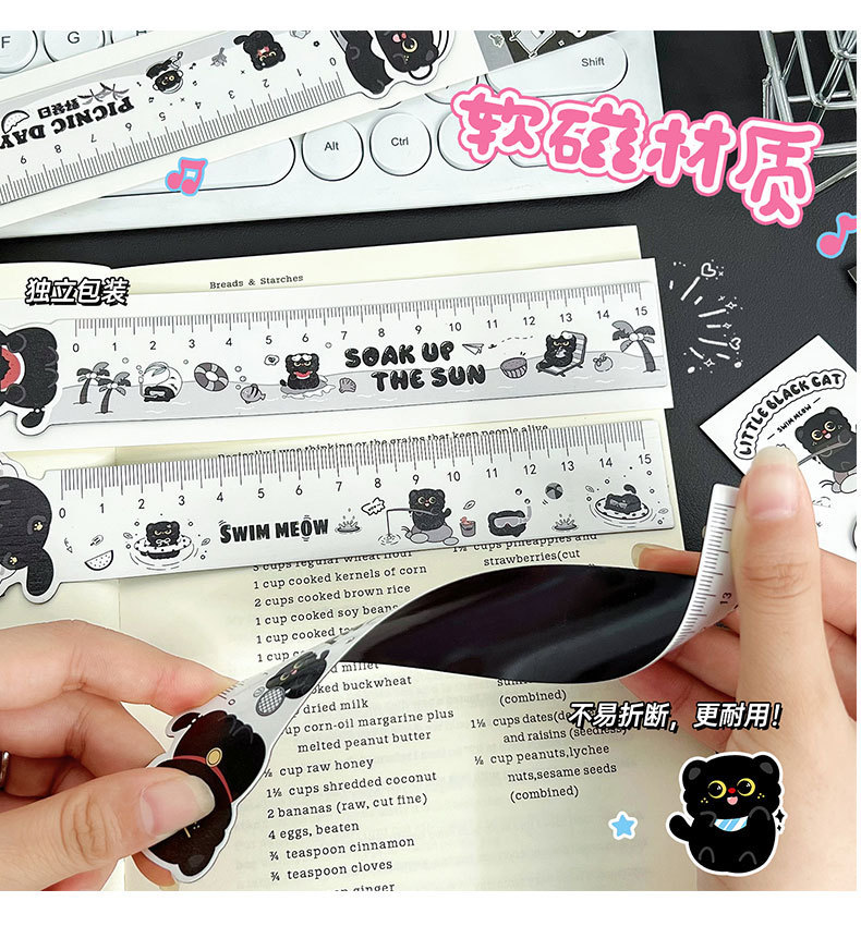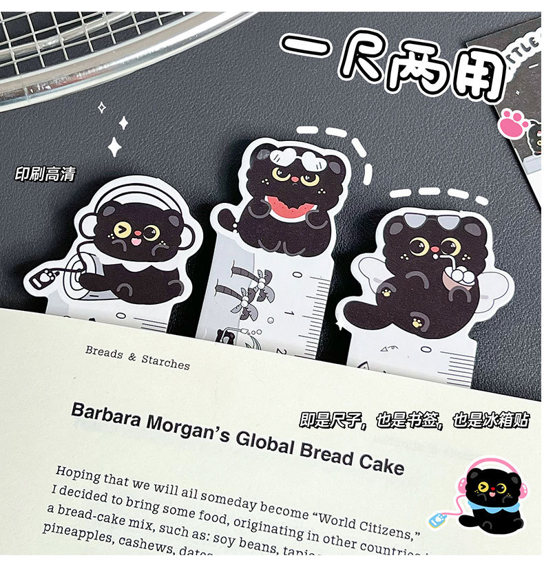 검은 새끼 고양이 자, 귀여운 자석 자, 학생들이 문제를 해결할 수 있는 특수 자, 수학 학습 측정 길이 자