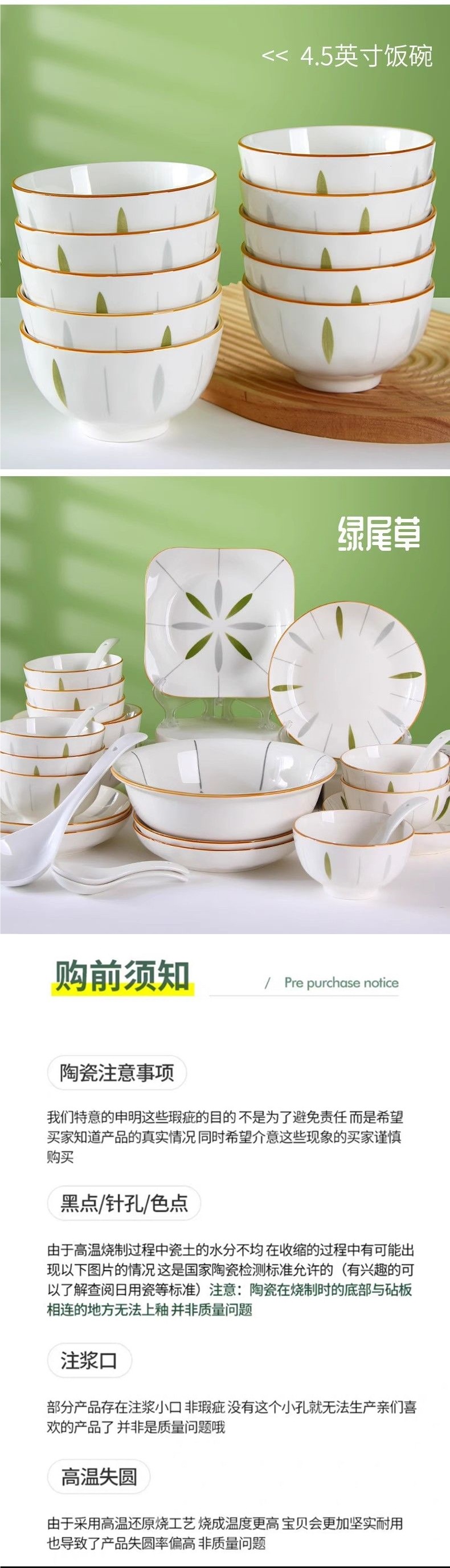 • 녹색 풀 2그릇 접시 2개 큰 그릇 1개 큰 스푼 1개 숟가락 2개 젓가락 2개