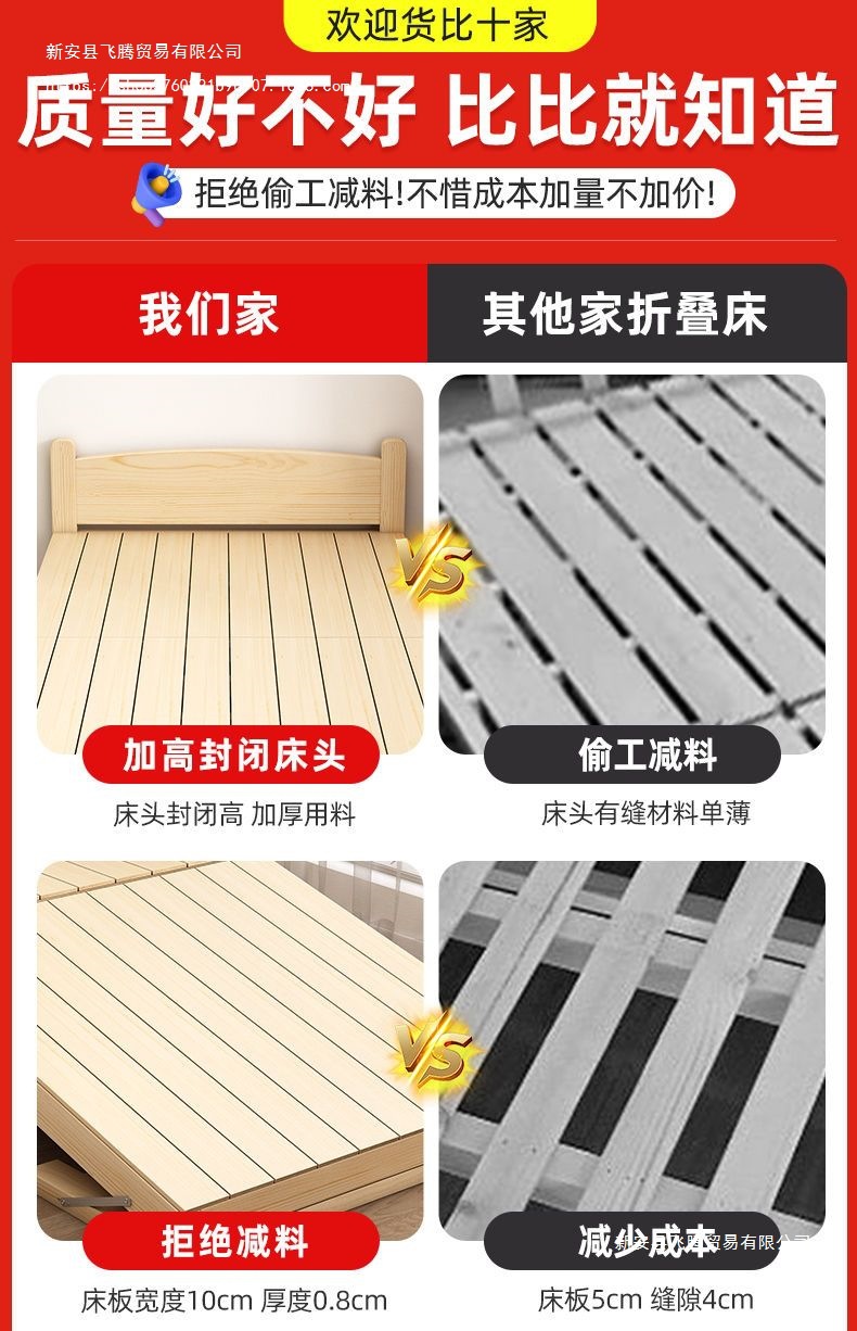 단단한 나무 접이식 침대 가정용 간단한 점심 시간 더블 싱글 침대 사무실 수면 침대 임대실 경제적인 침대 프레임스토어 가기