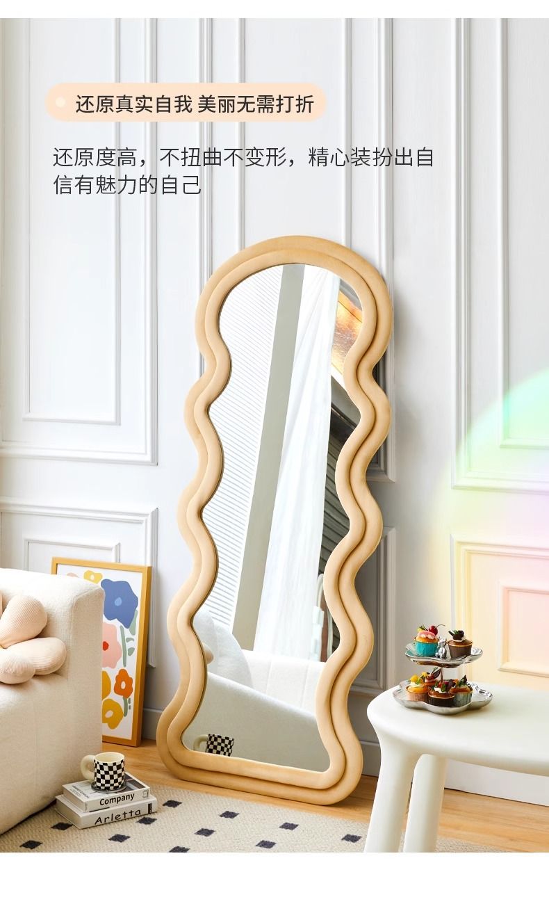 물결 모양의 전신 거울 ins 침실 거울 드레싱 거울 바닥에 서 있는 인터넷 연예인 드레싱 거울 소녀 침실 소프트 프레임
