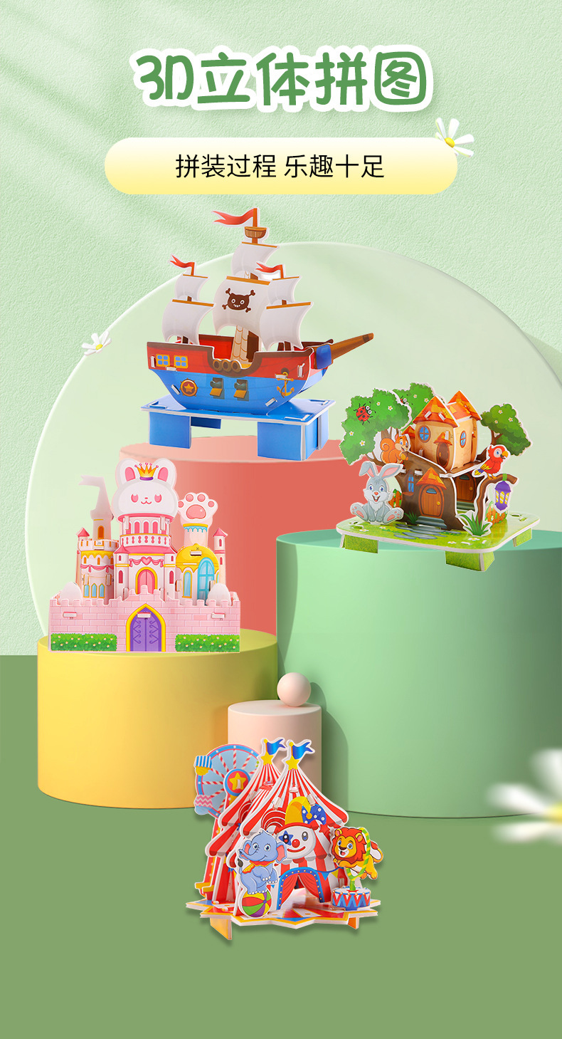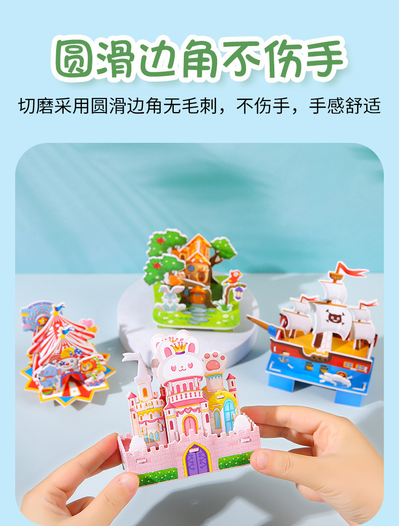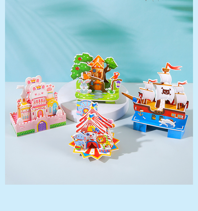 유치원 조기 교육 교육 퍼즐 어린이 수제 3D 입체 조경 성 퍼즐 어린이를위한 재미있는 장난감스토어 가기