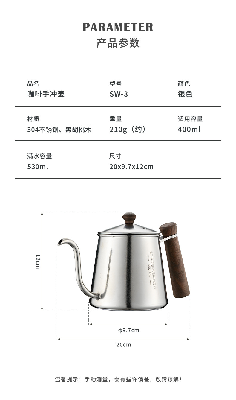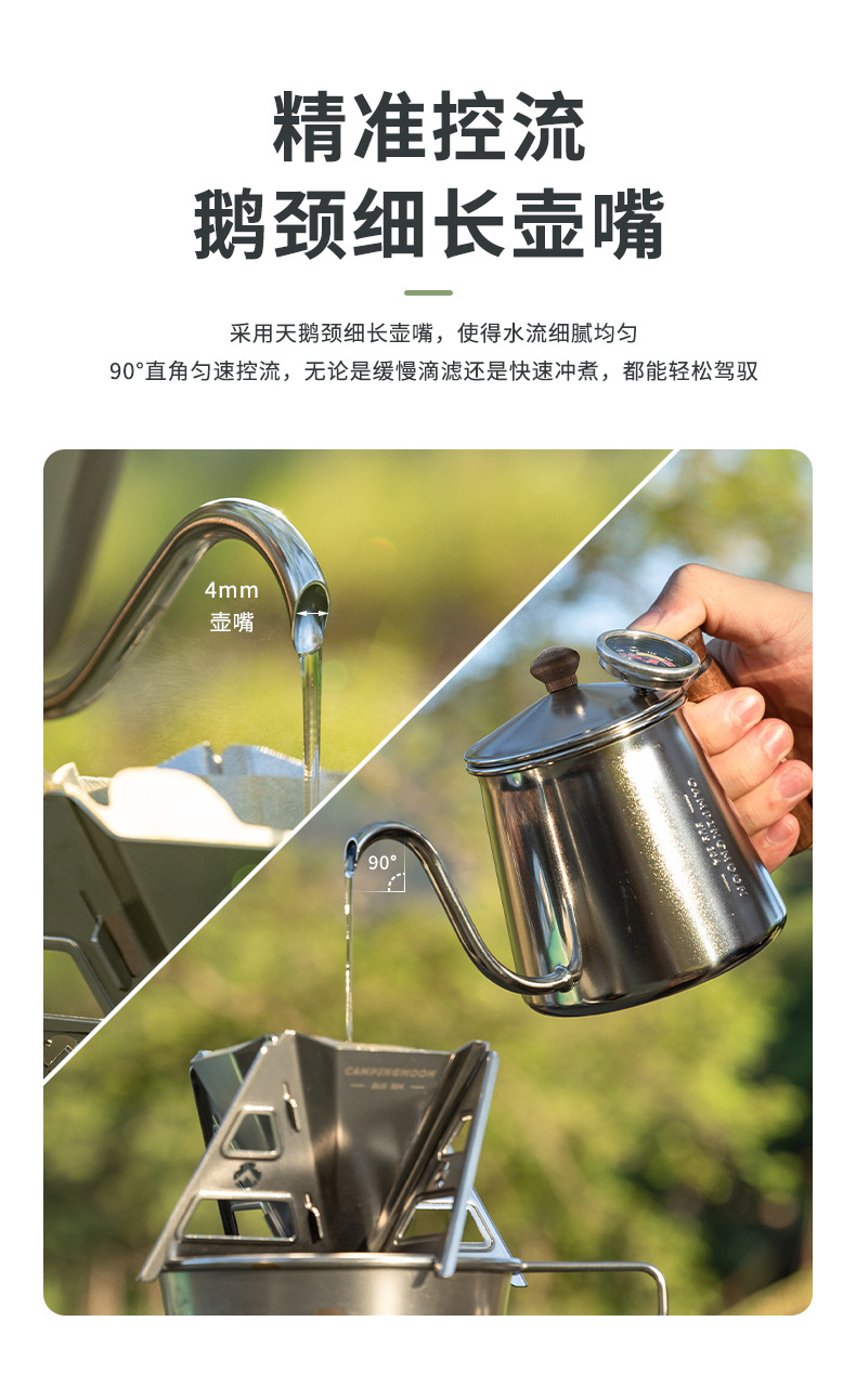 Koman SW-3 커피 핸드 브루잉 포트 304 스테인레스 스틸 올인원 공예 구즈넥 얇은 입 주전자 야외 주전자 커피 포트