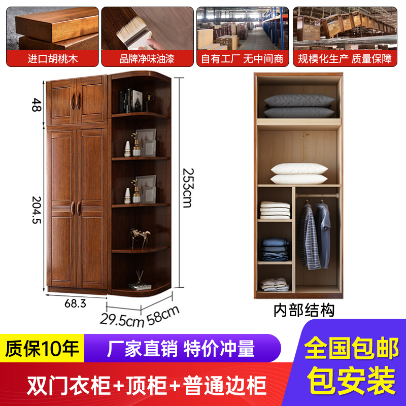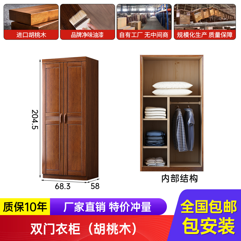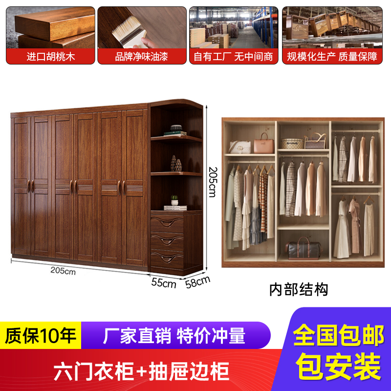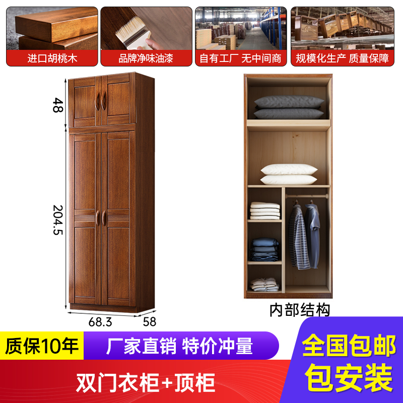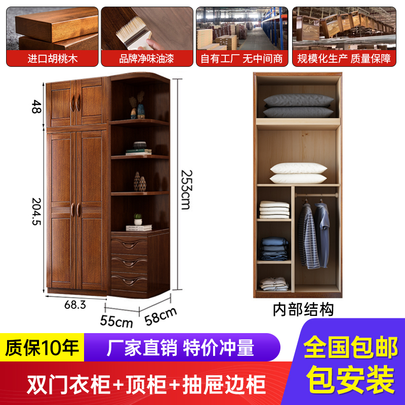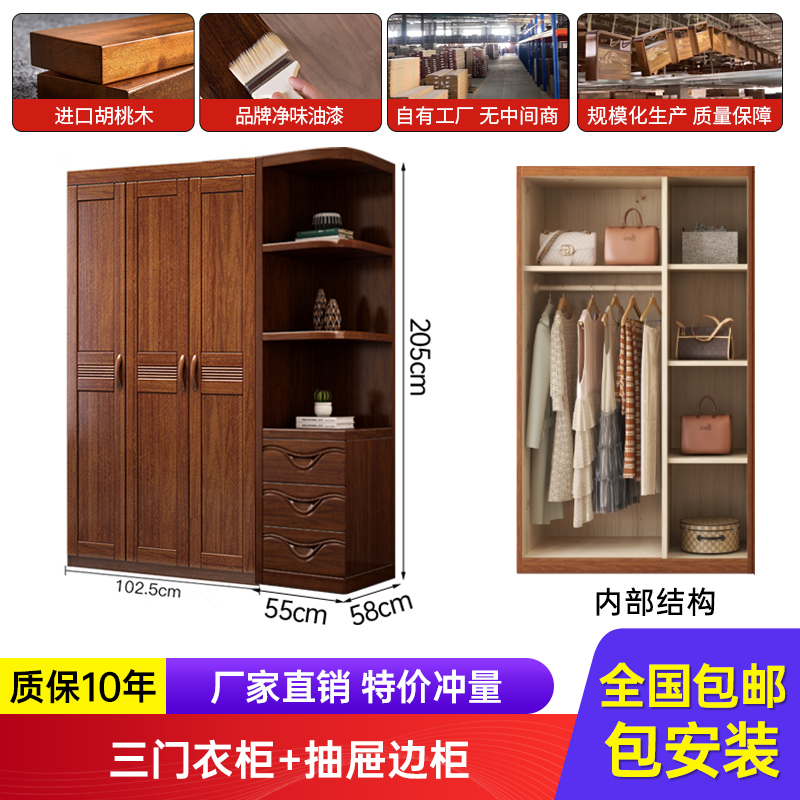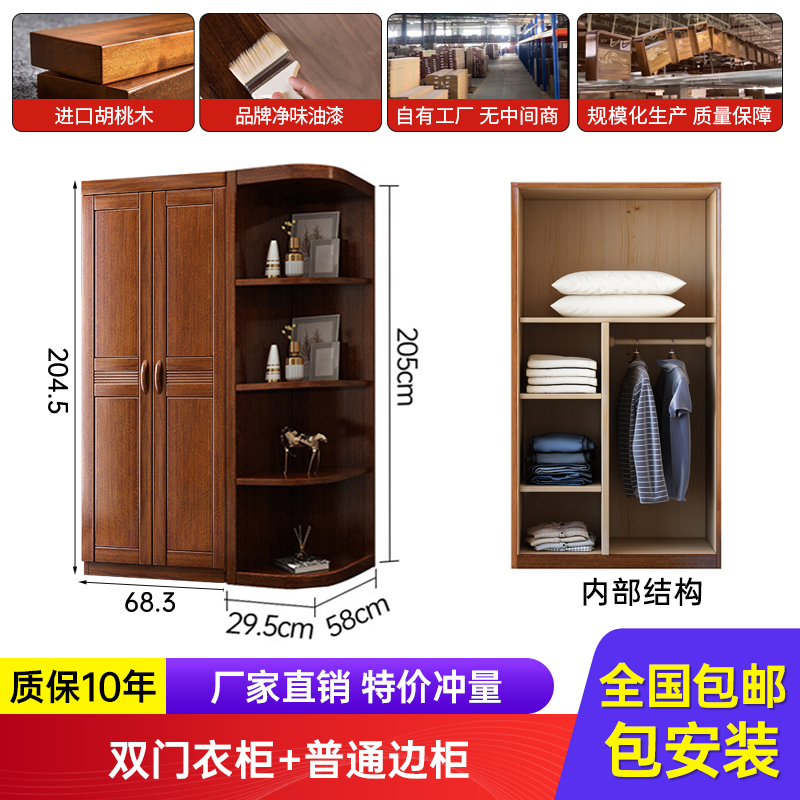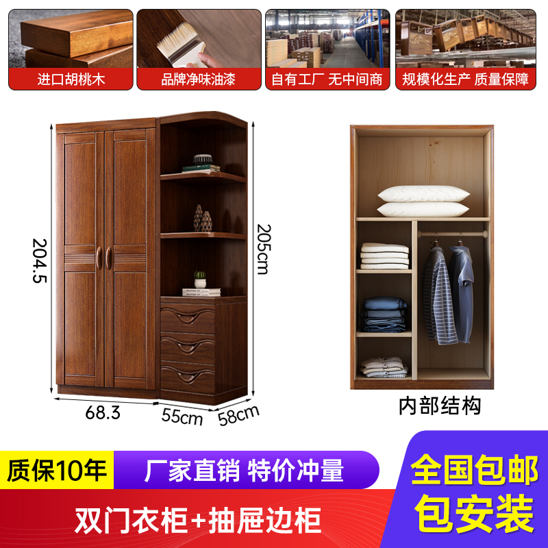 호두나무 원목 옷장 홈 침실 작은 아파트 통나무 원목 옷 수납 캐비닛 간단한 옷장