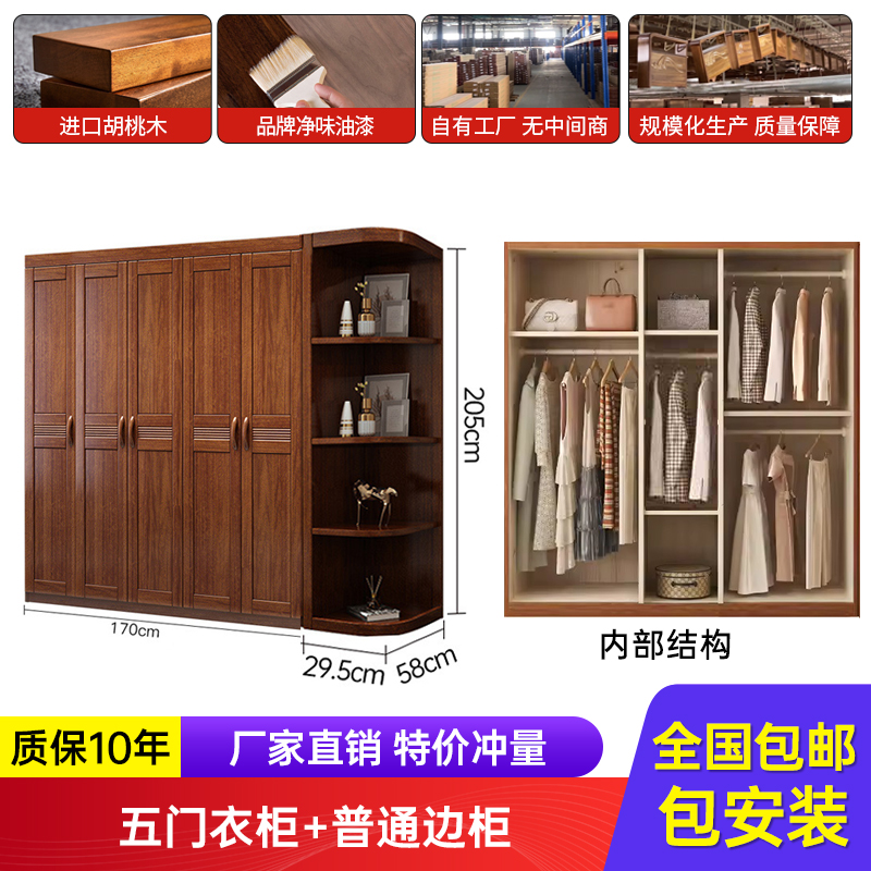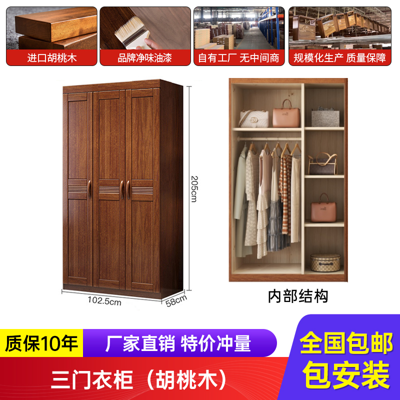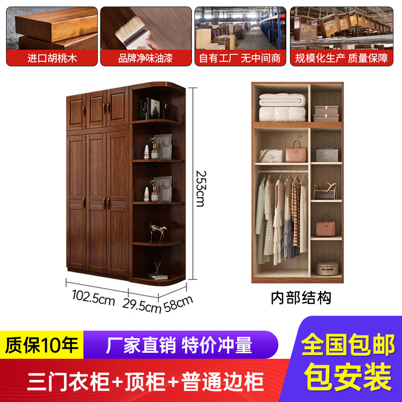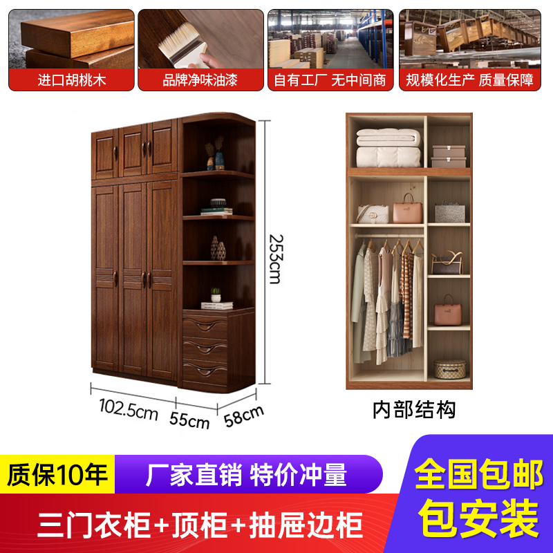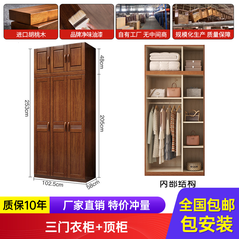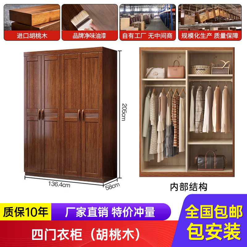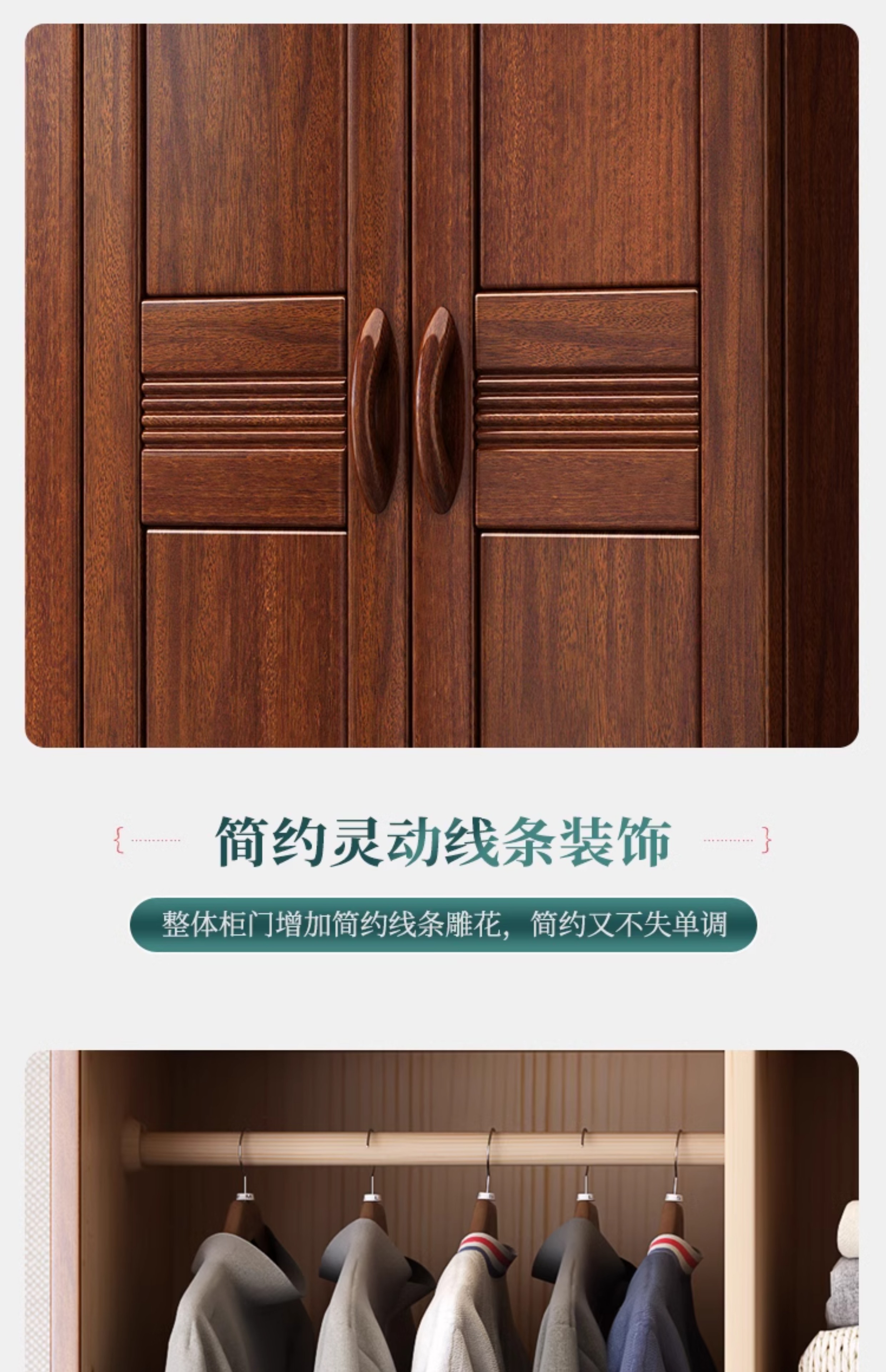 호두나무 원목 옷장 홈 침실 작은 아파트 통나무 원목 옷 수납 캐비닛 간단한 옷장