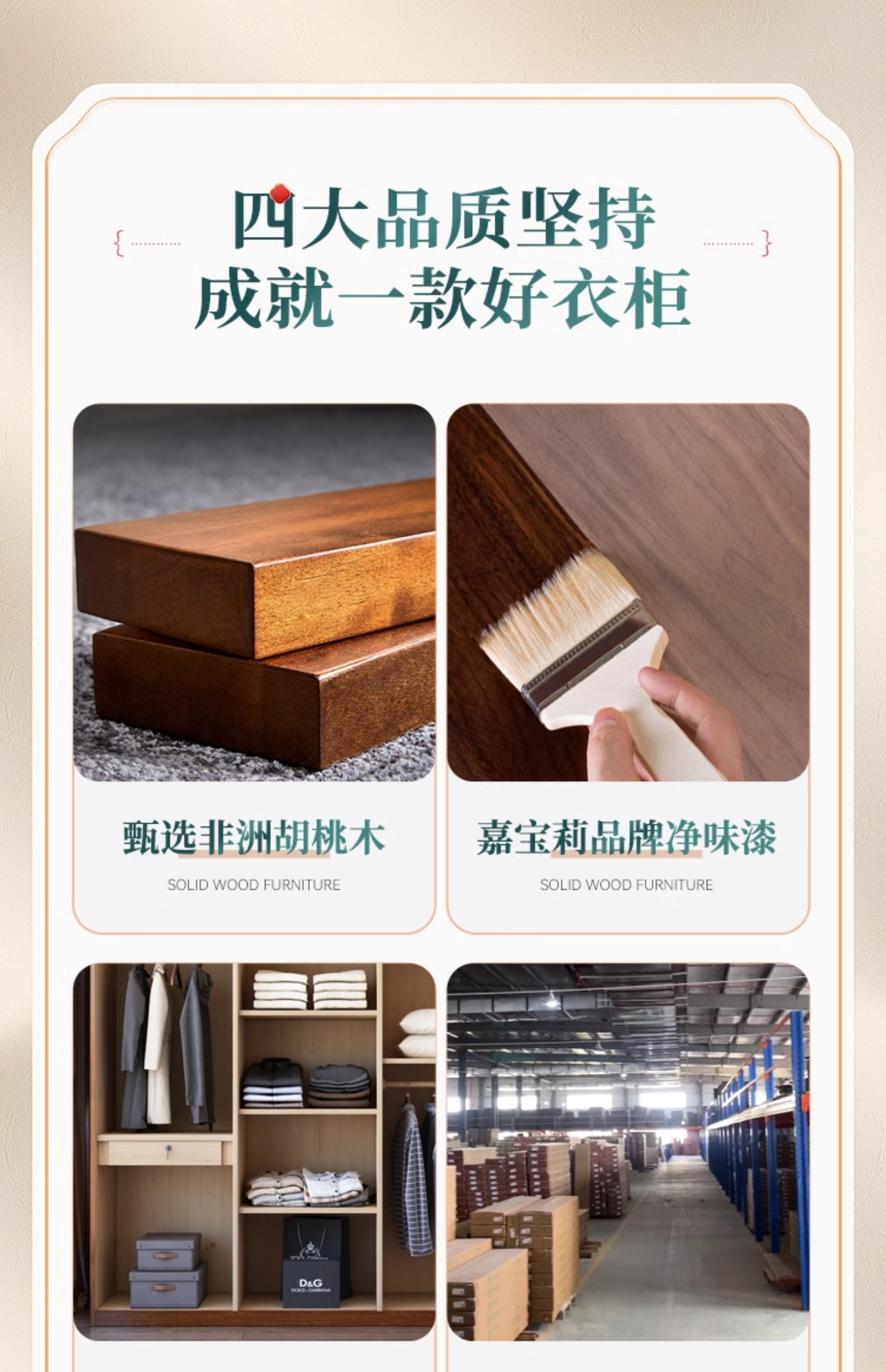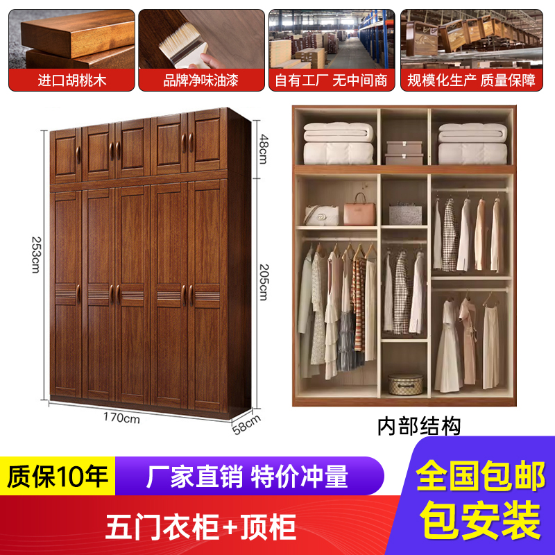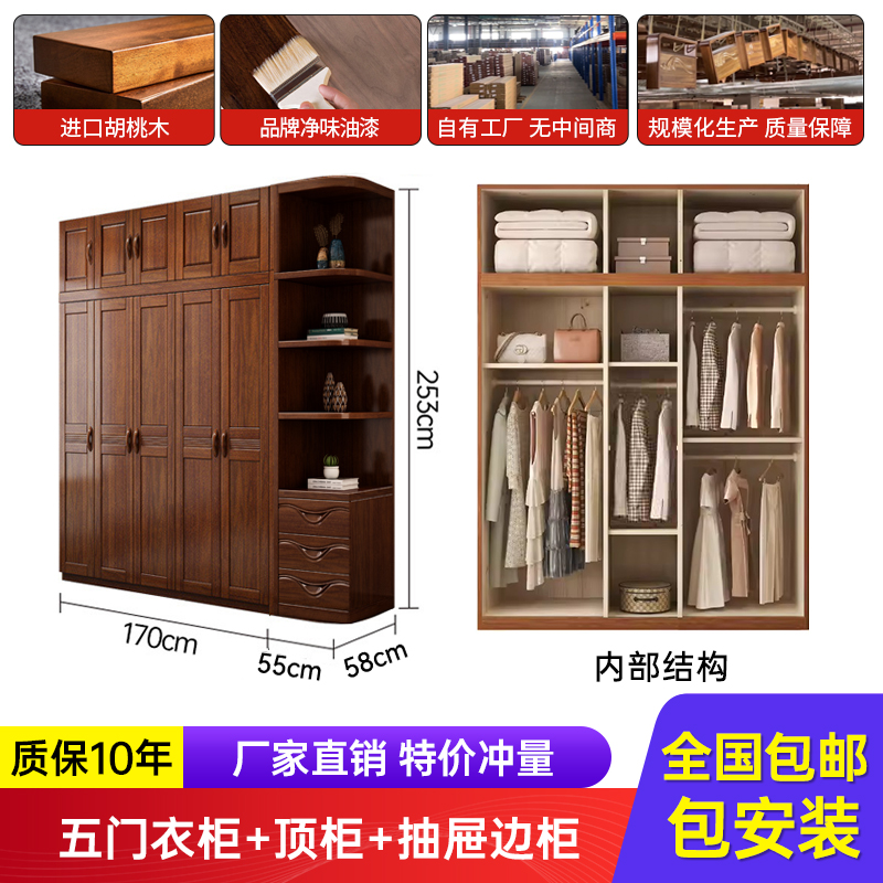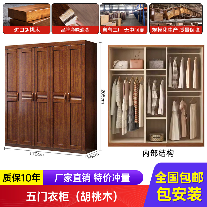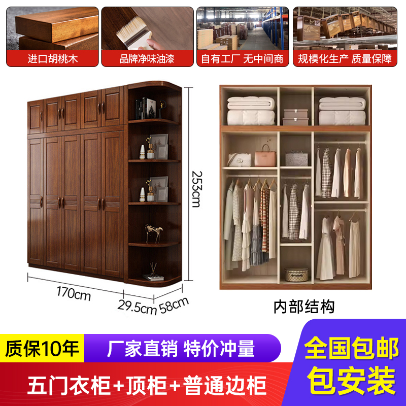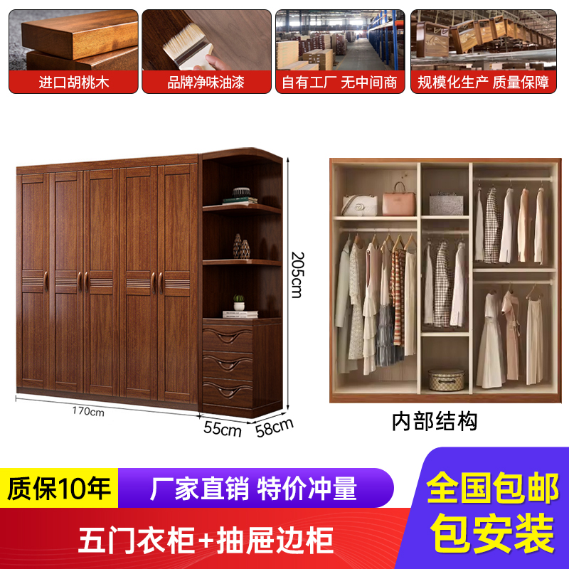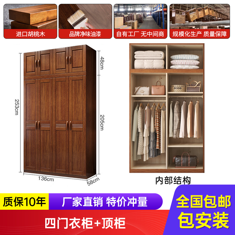호두나무 원목 옷장 홈 침실 작은 아파트 통나무 원목 옷 수납 캐비닛 간단한 옷장
