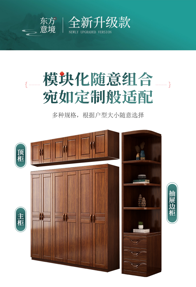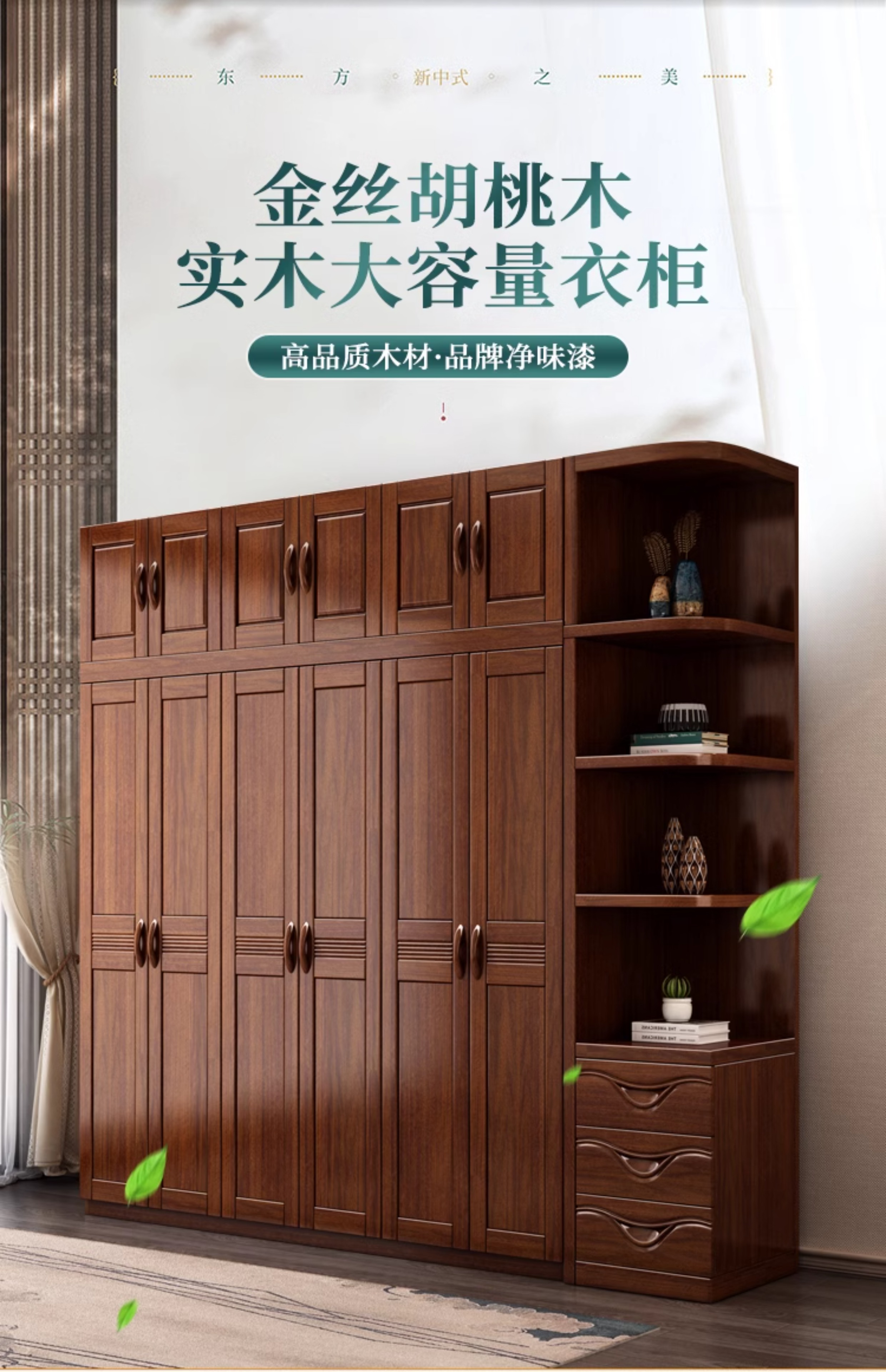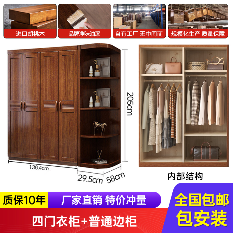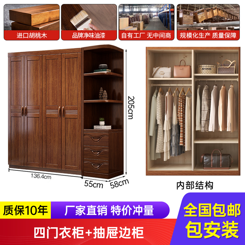 호두나무 원목 옷장 홈 침실 작은 아파트 통나무 원목 옷 수납 캐비닛 간단한 옷장스토어 가기