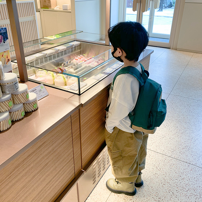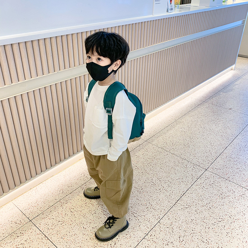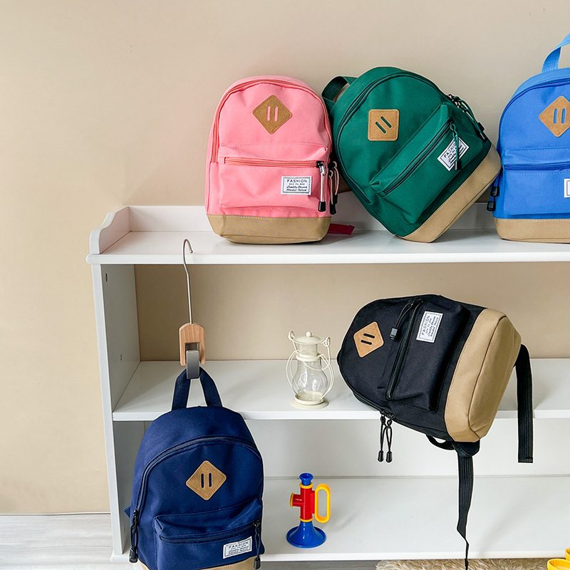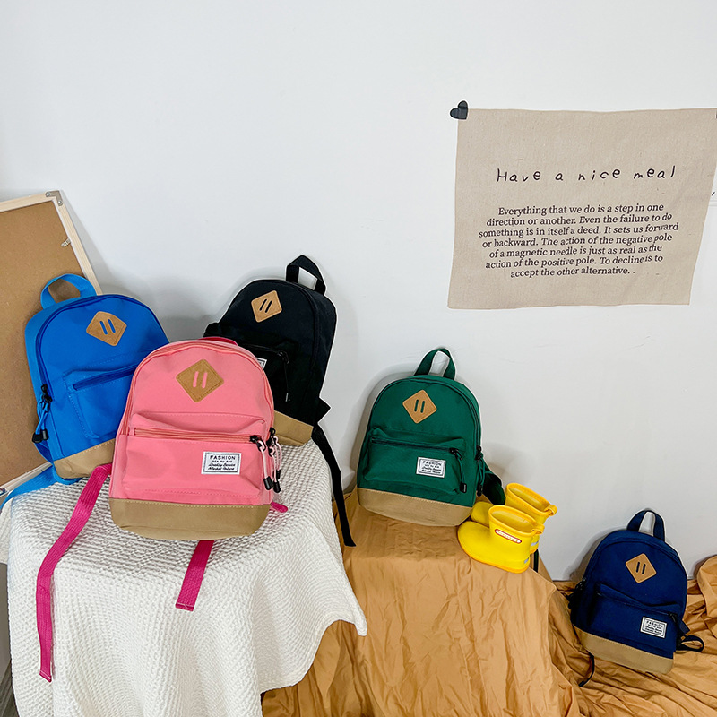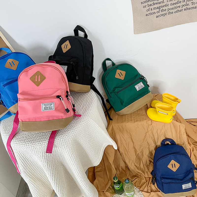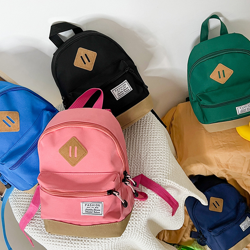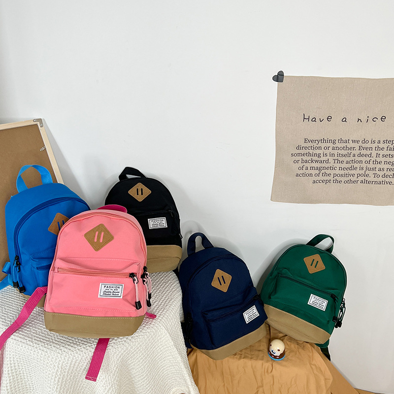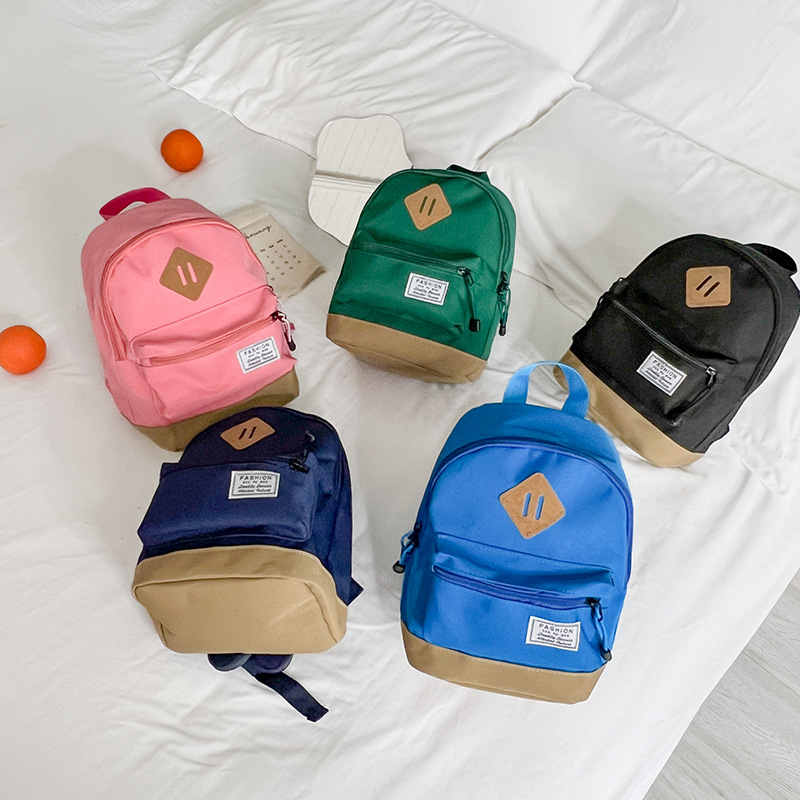 한국 스타일 소년 여행 배낭 간단하고 가벼운 소년과 소녀 캔버스 단색 나들이 작은 배낭 어린이 가방스토어 가기
