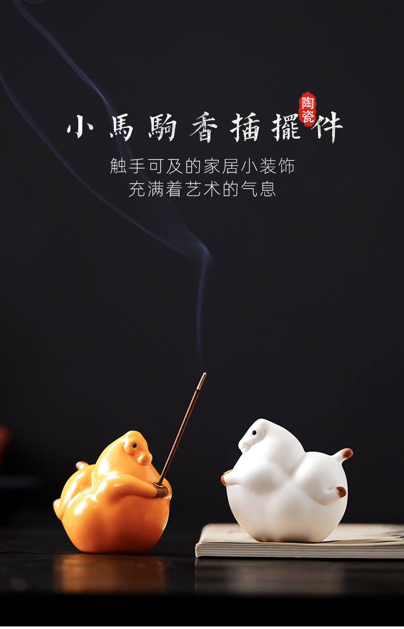 크리 에이 티브 귀여운 손으로 그린 작은 조랑말 세라믹 아로마 테라피 스토브 장식품 홈 실내 조랑말 차 애완 동물 향 홀더 향 스틱 향 홀더