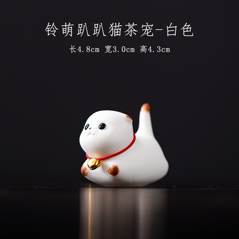 • 손으로 그린 ​​종소리와 귀여운 새끼 고양이 장식품 (흰색)