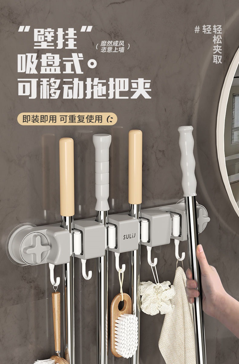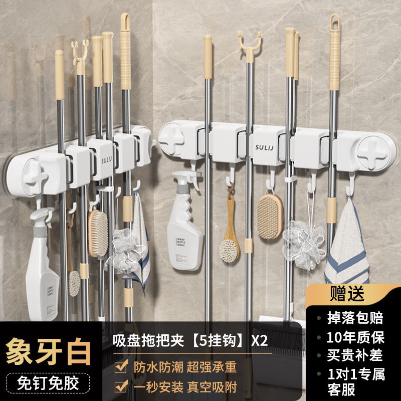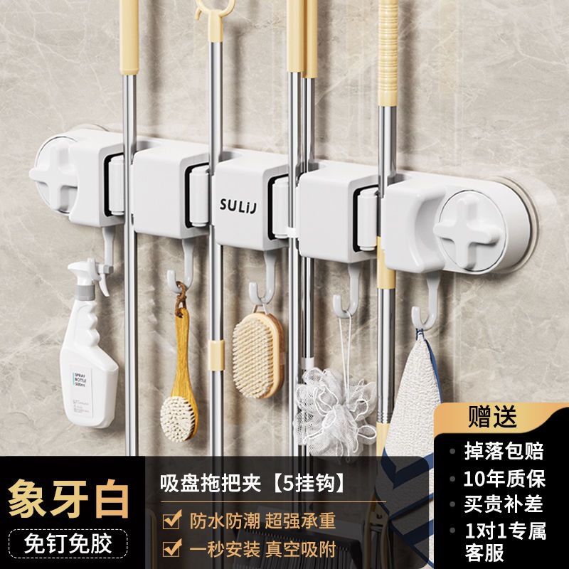 흡입컵 걸레 벽걸이 클립 펀치 없는 벽걸이형 빗자루 걸레 가정용 욕실 욕실 고정 랙 후크스토어 가기
