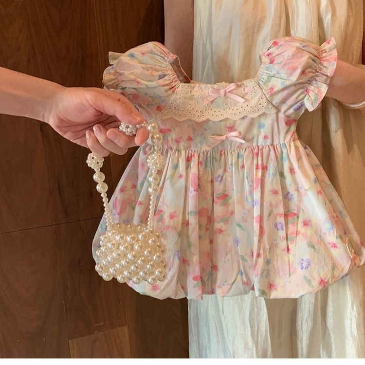 여아 꽃무늬 드레스 여름 2025 새로운 휴가 어린 소녀 아기 달콤하고 세련된 꽃무늬 스커트 1세스토어 가기