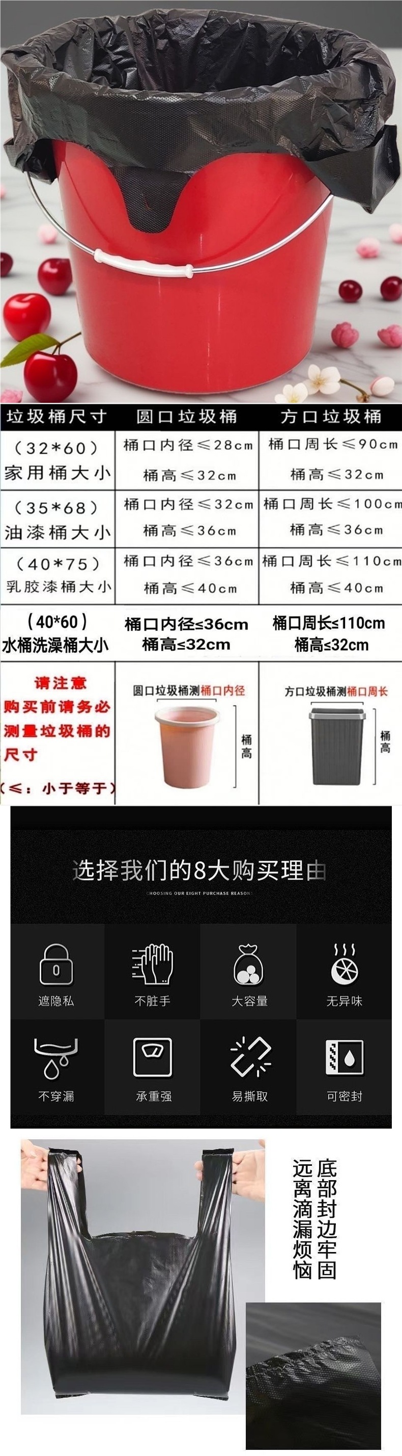 더 크고 두꺼운 페인트통 쓰레기 봉투 물통 가정용 휴대용 검정색 주방 대형스토어 가기