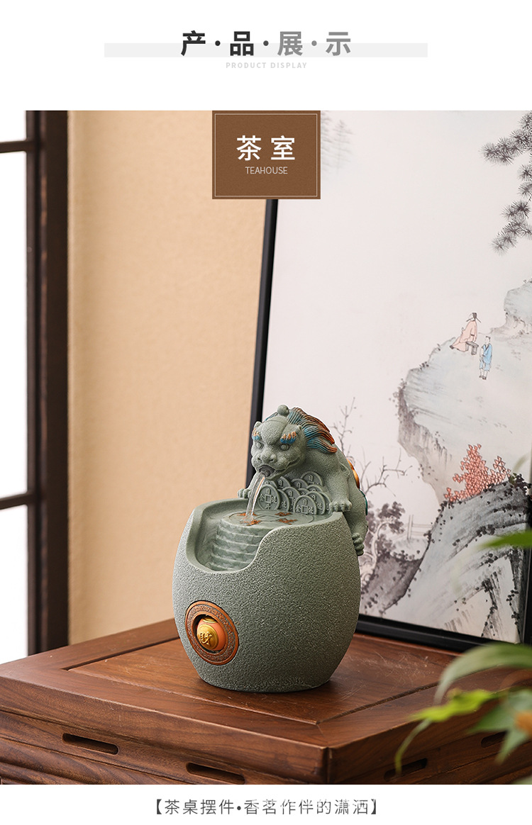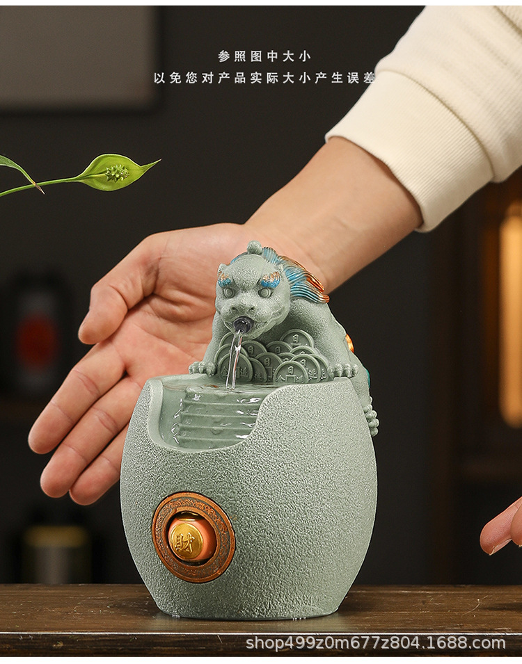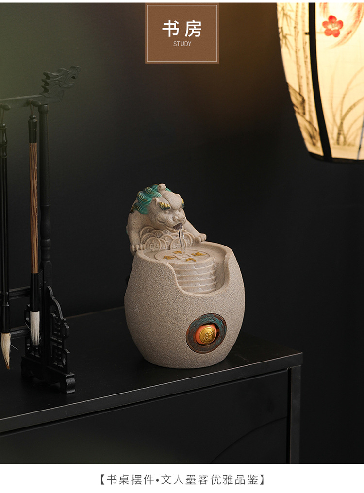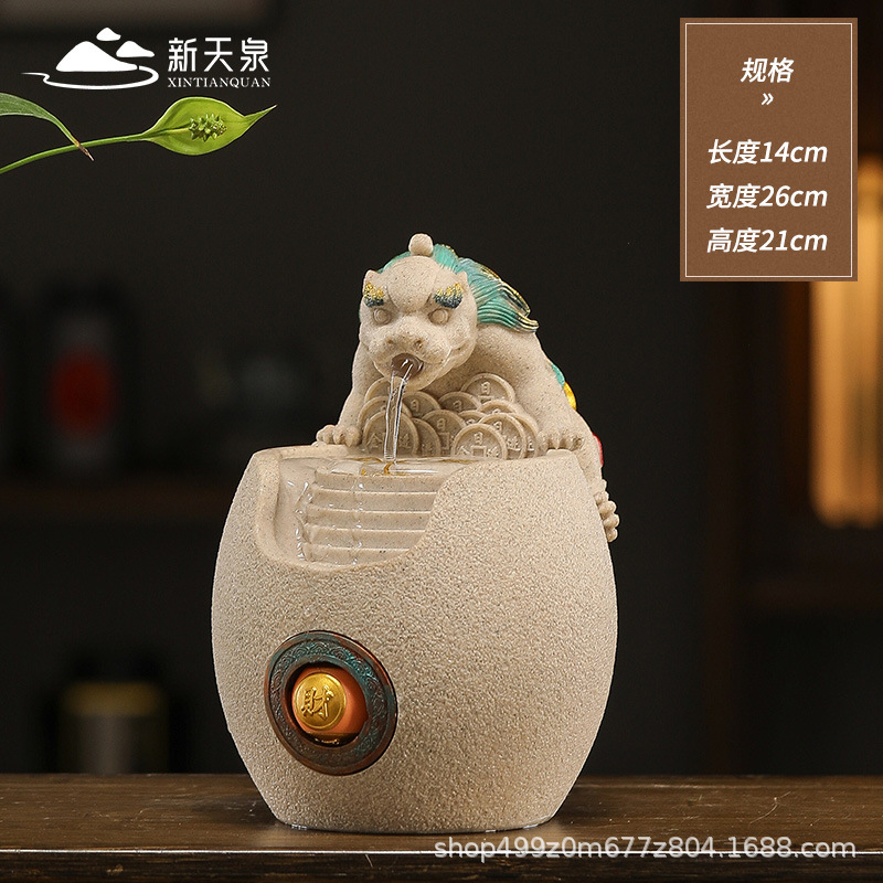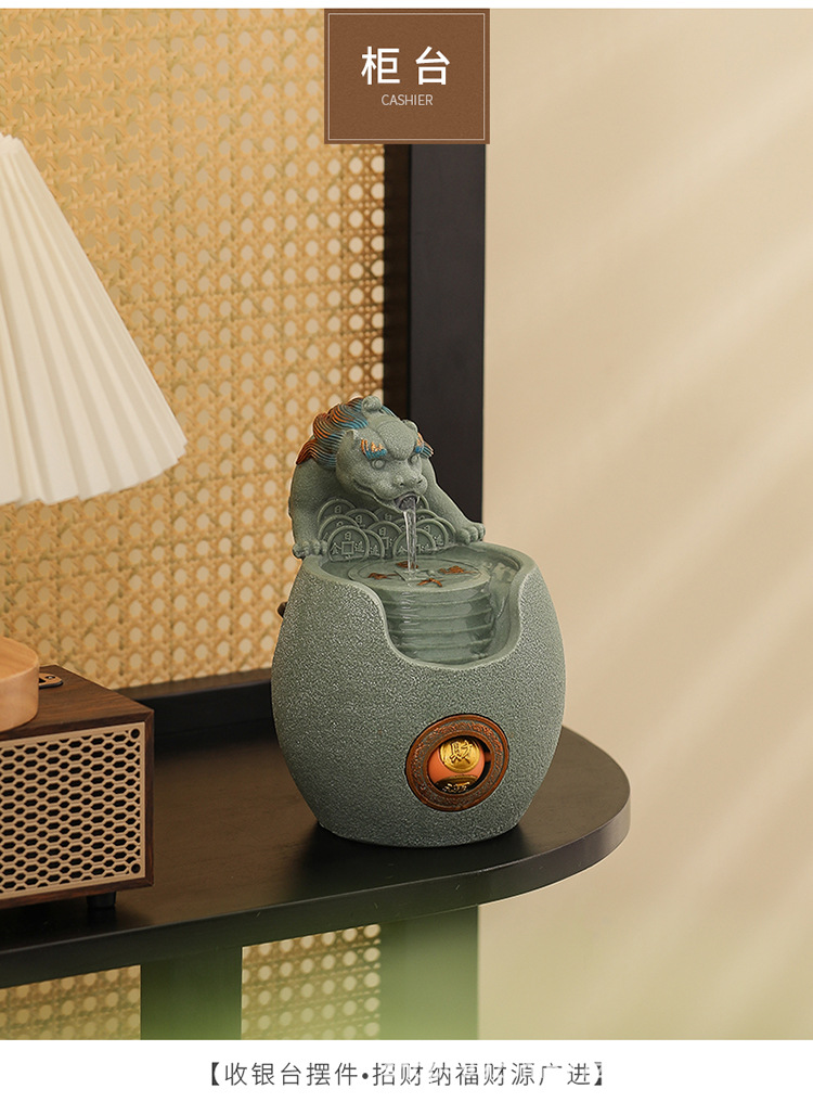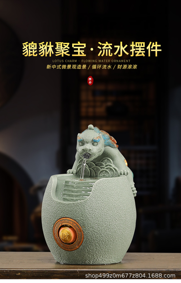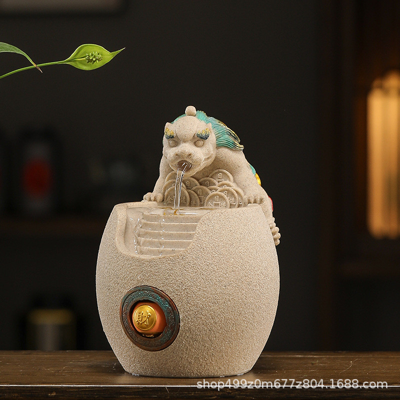 행운의 Pixiu 흐르는 물 장식품 사무실 워크 스테이션 데스크탑 분수 순환 수경 중국 스타일 거실 전송 구슬 장식