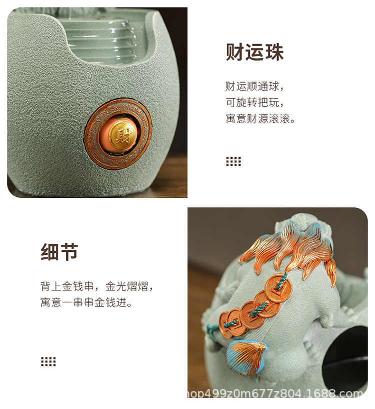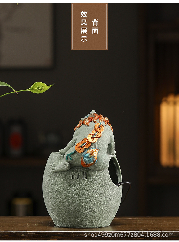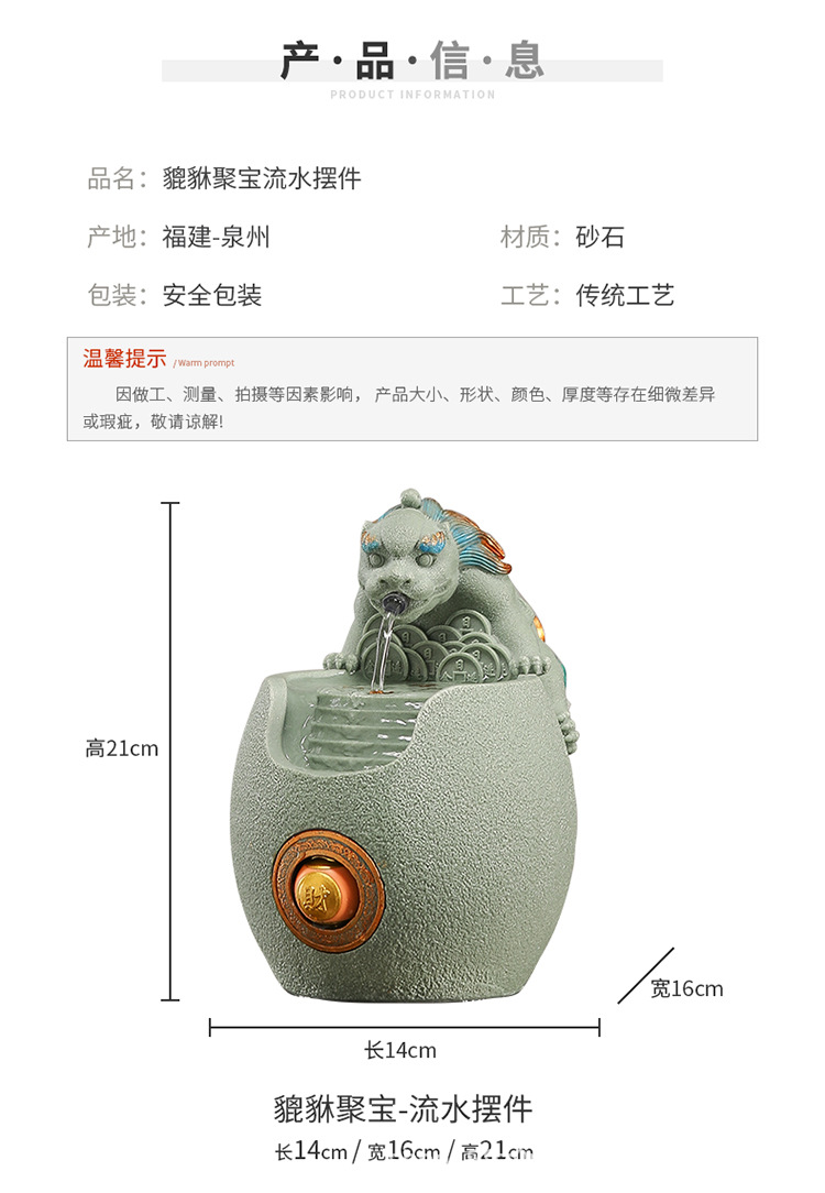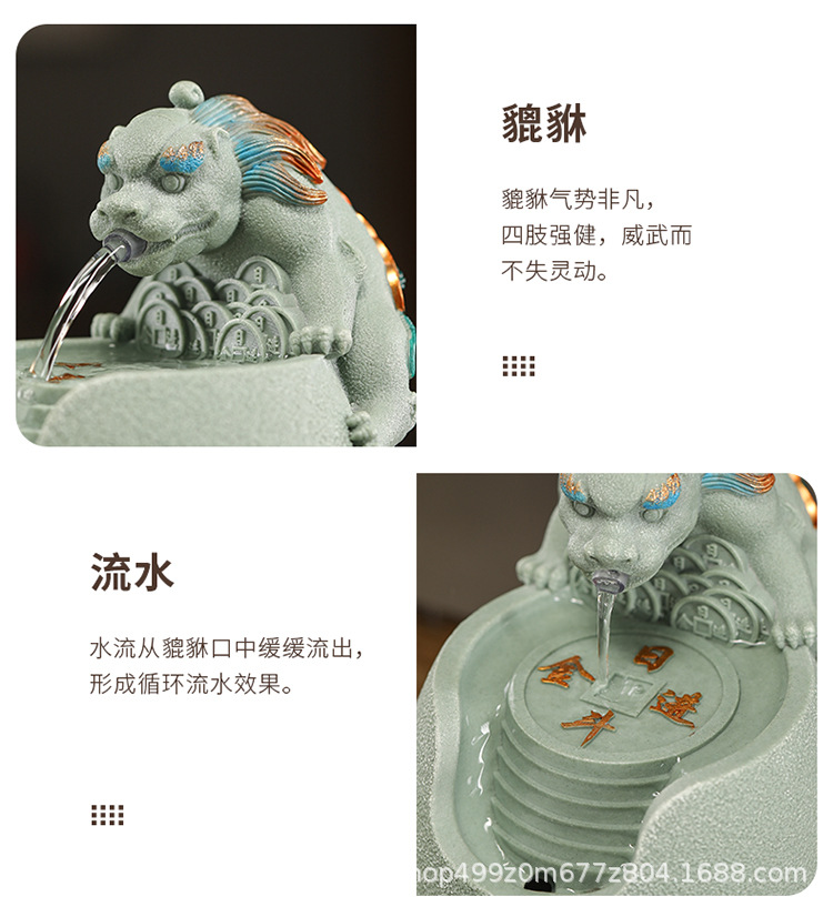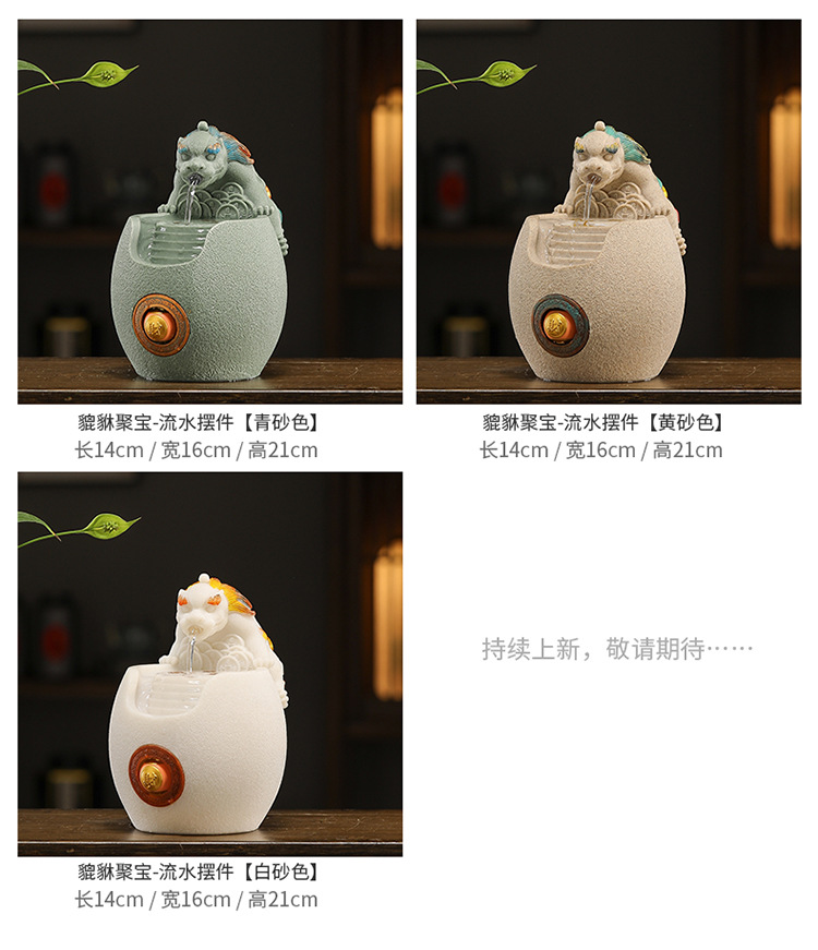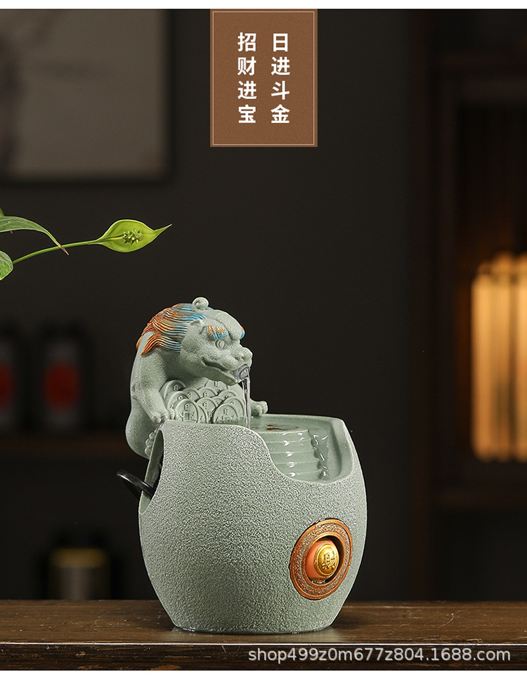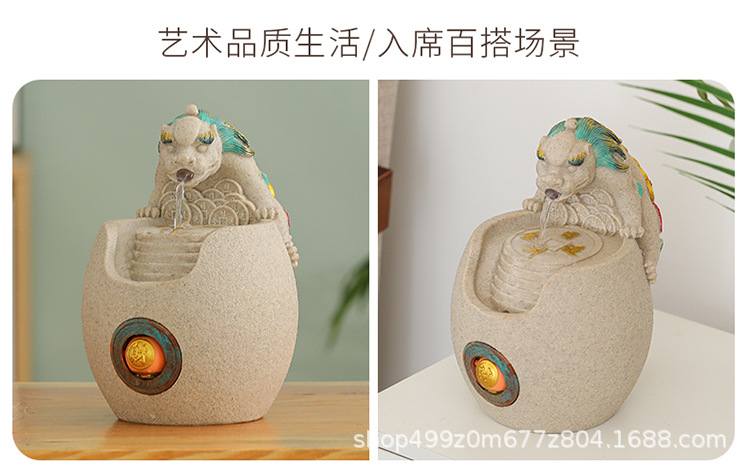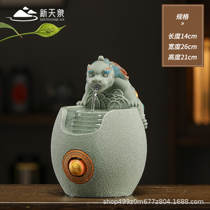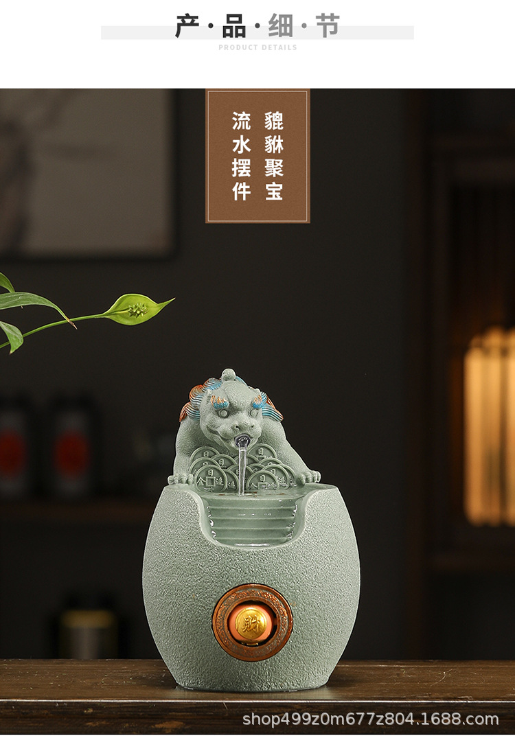 행운의 Pixiu 흐르는 물 장식품 사무실 워크 스테이션 데스크탑 분수 순환 수경 중국 스타일 거실 전송 구슬 장식