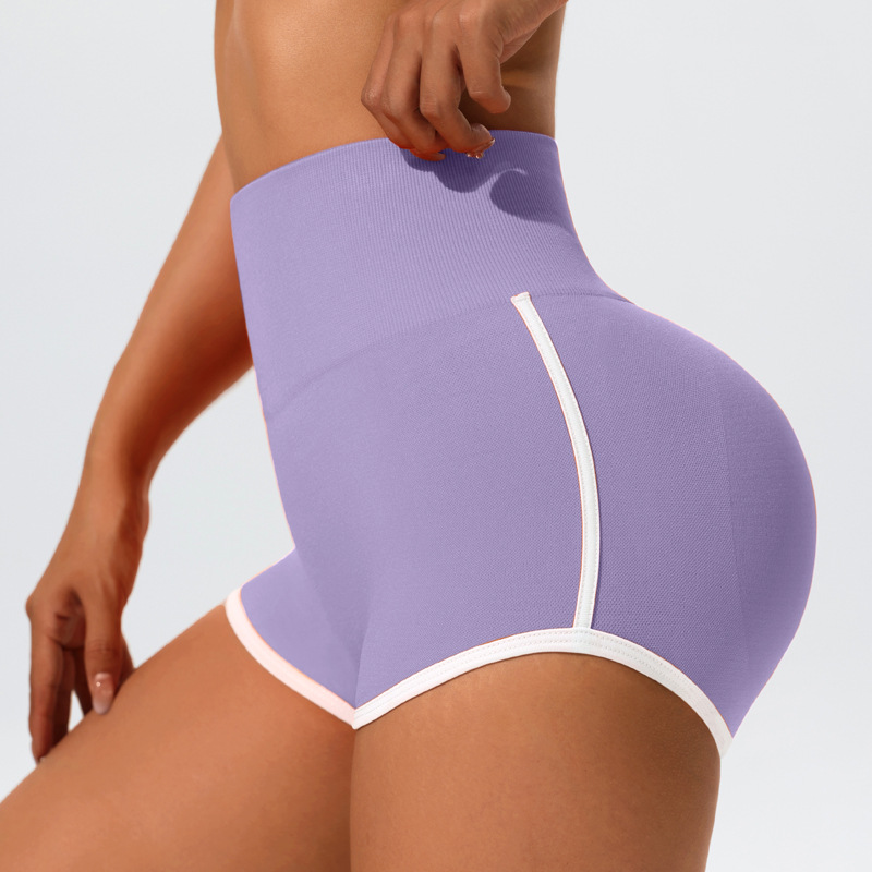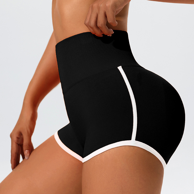 유럽과 미국의 심리스 하이웨이스트 배색 요가반바지, 복부 조절 및 엉덩이 리프팅 피트니스 팬츠, 여름용 런닝 스포츠 반바지