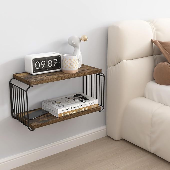 철과 목재 결합 플로팅 침대 옆 테이블 벽걸이 형 선반 침대 옆 책장 욕실 벽 수납 선반