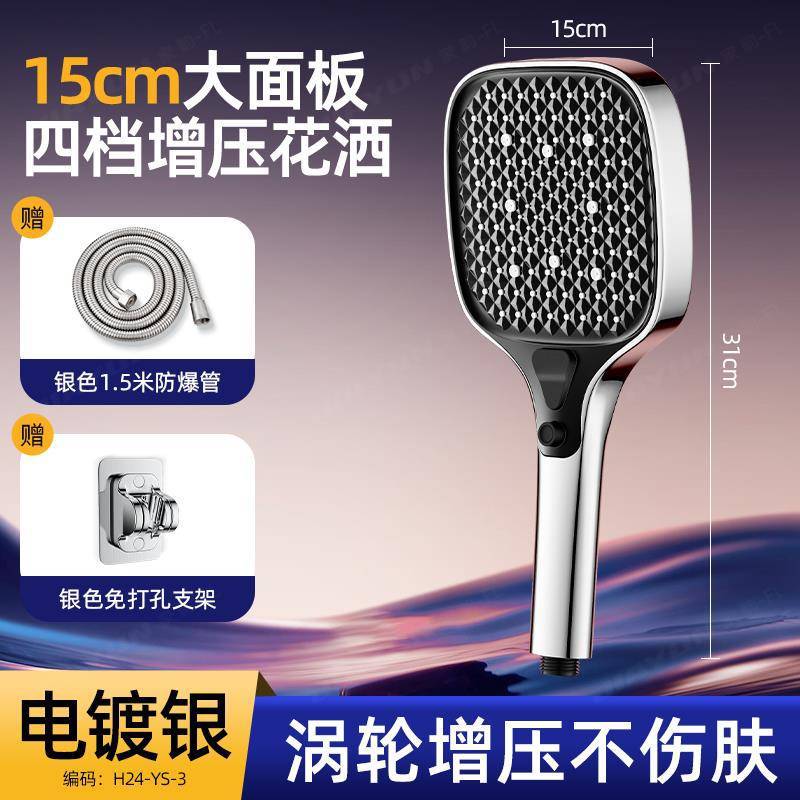 • 【SA-88】145호#[실버세트3] 15cm 초대형 패널 슈퍼차지 샤워기 + 1.5m 튜브 + 브라켓