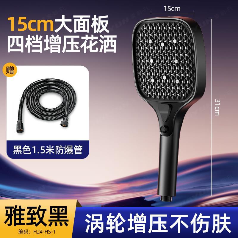 • 【SA-88】145호#【블랙 세트 3】 15cm 초대형 패널 가압 샤워기 + 1.5m 호스 + 거치대