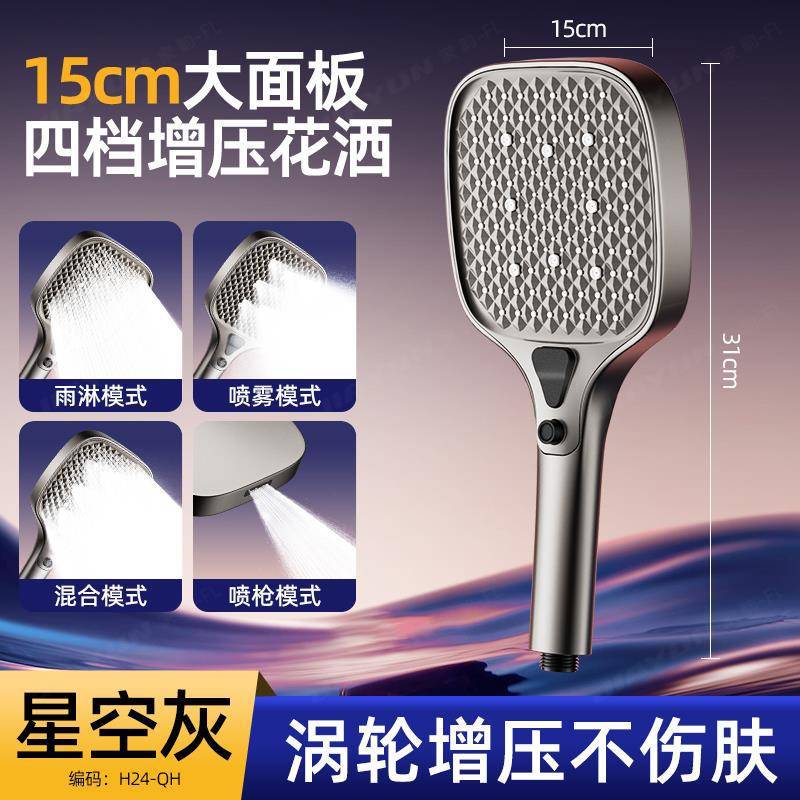 • 【SA-88】145호#[그레이세트1] 15cm 초대형 패널 슈퍼차지 샤워기 + 1.5m 튜브