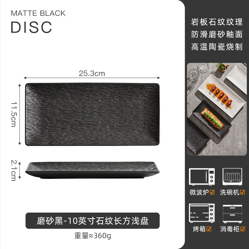 • 매트 블랙 - 10inch 스톤 패턴 직사각형 얕은 접시