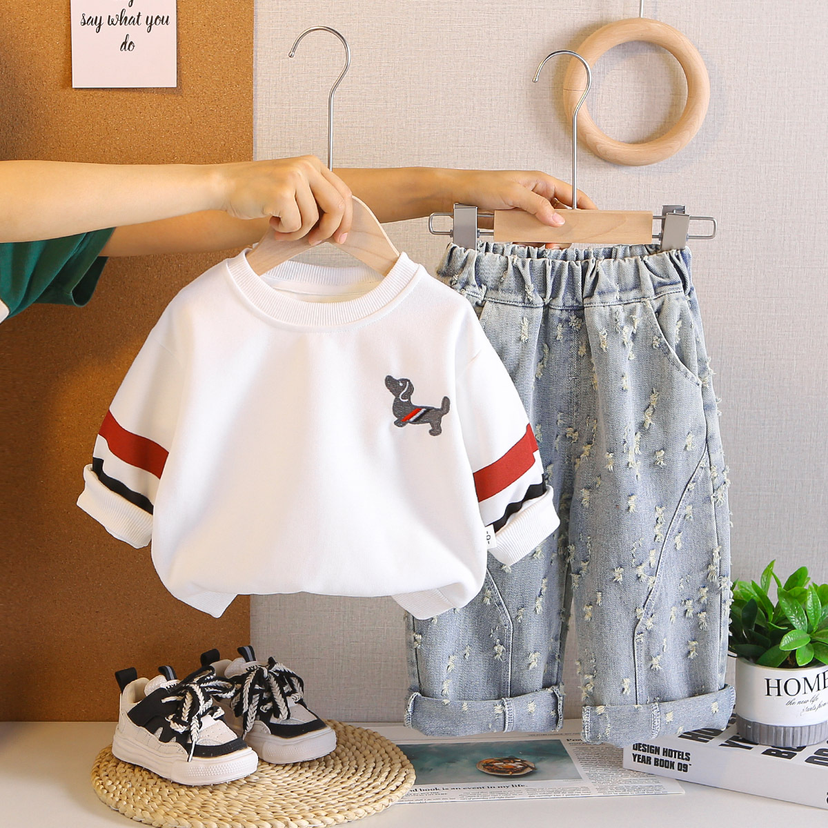2025 새로운 가을, 겨울 소년의 간단한 유행 풀오버 아기 투피스 세트 공장 도매스토어 가기