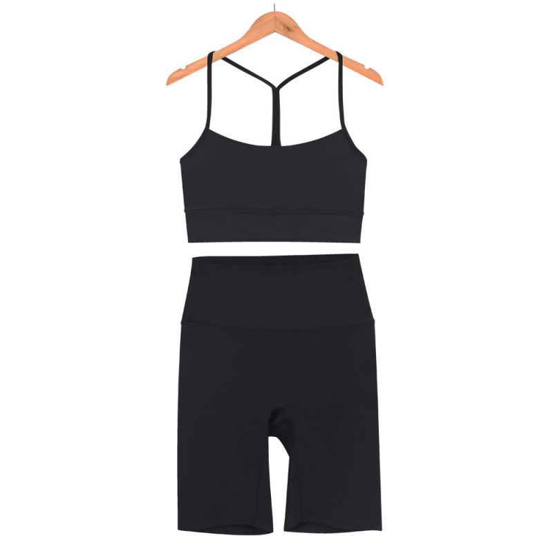 룰루의 오리지널 라벨 Y 조끼 속옷 여성 피트니스 누드 브라 아름다운 등 5부 바지 요가복 세트