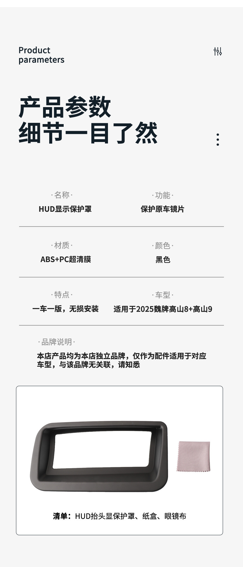 2025 Wei Mountain 8/Alpine 9 헤드업 디스플레이 보호 커버 HUD 자동차 인테리어 용품 수정에 적합한 공장 직접 공급스토어 가기