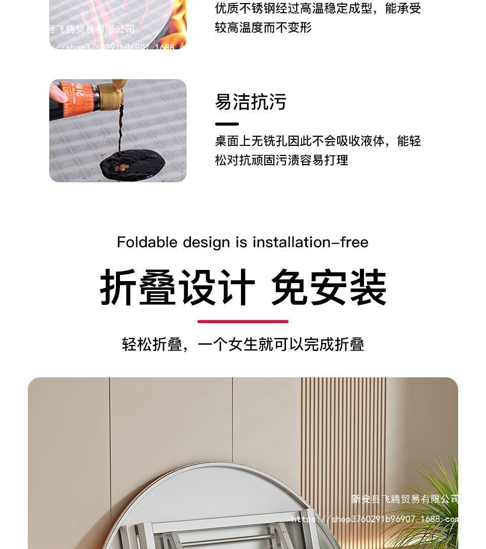 304 초두꺼운 스테인레스 스틸 원형 테이블 핫 세일 통합 접이식 테이블 홈 테이블 스톨 식탁 레스토랑 식탁스토어 가기