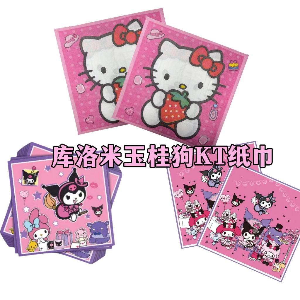 국경 간 스팟 계피 개 쿠로미 헬로 키티 멀티 테마 생일 파티 귀여운 만화 애니메이션 패턴 티슈스토어 가기