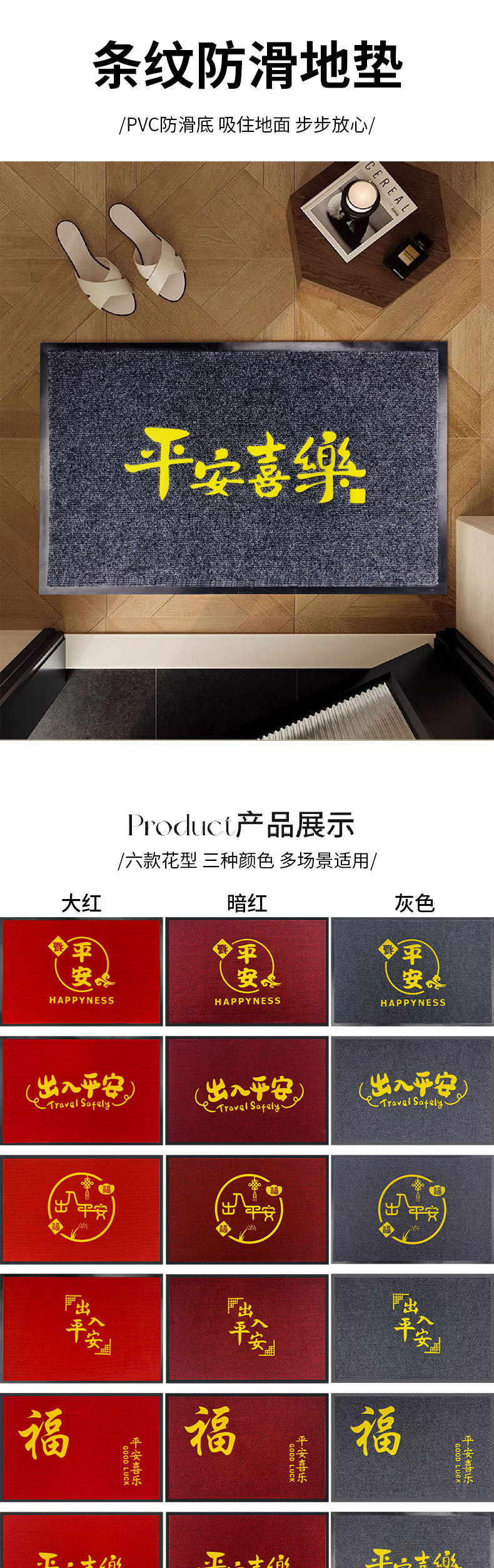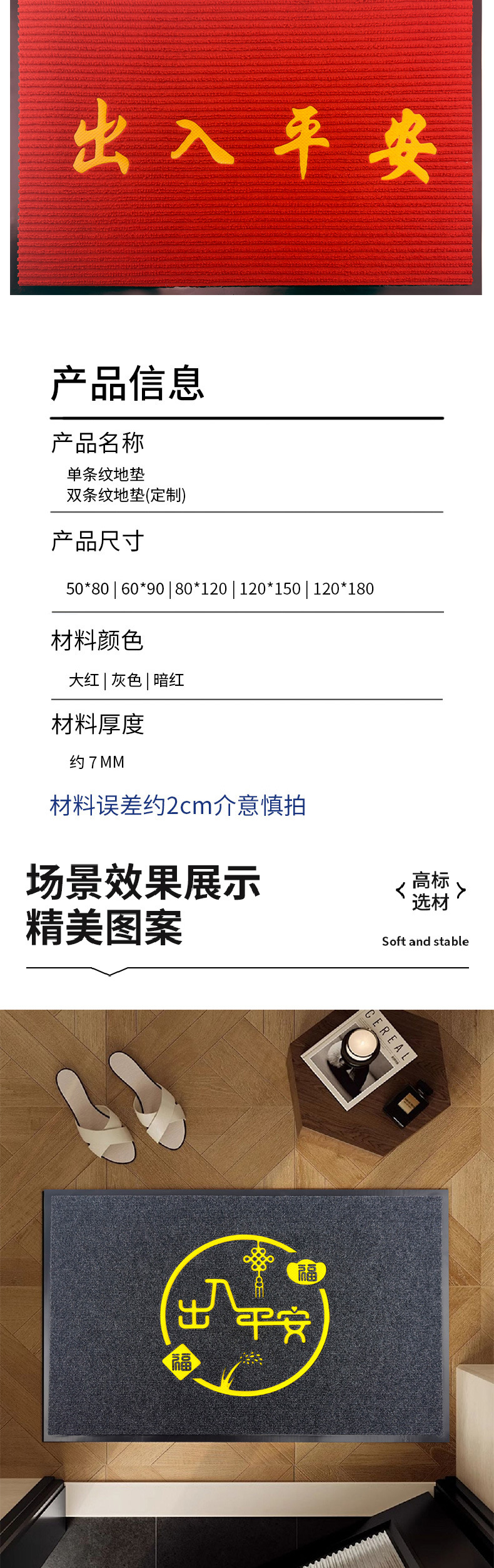 가정용 출입문 줄무늬 카펫 7MM 상업용 호텔 환영 매트 흡수성 진흙 긁힘 이중 줄무늬 바닥 매트스토어 가기