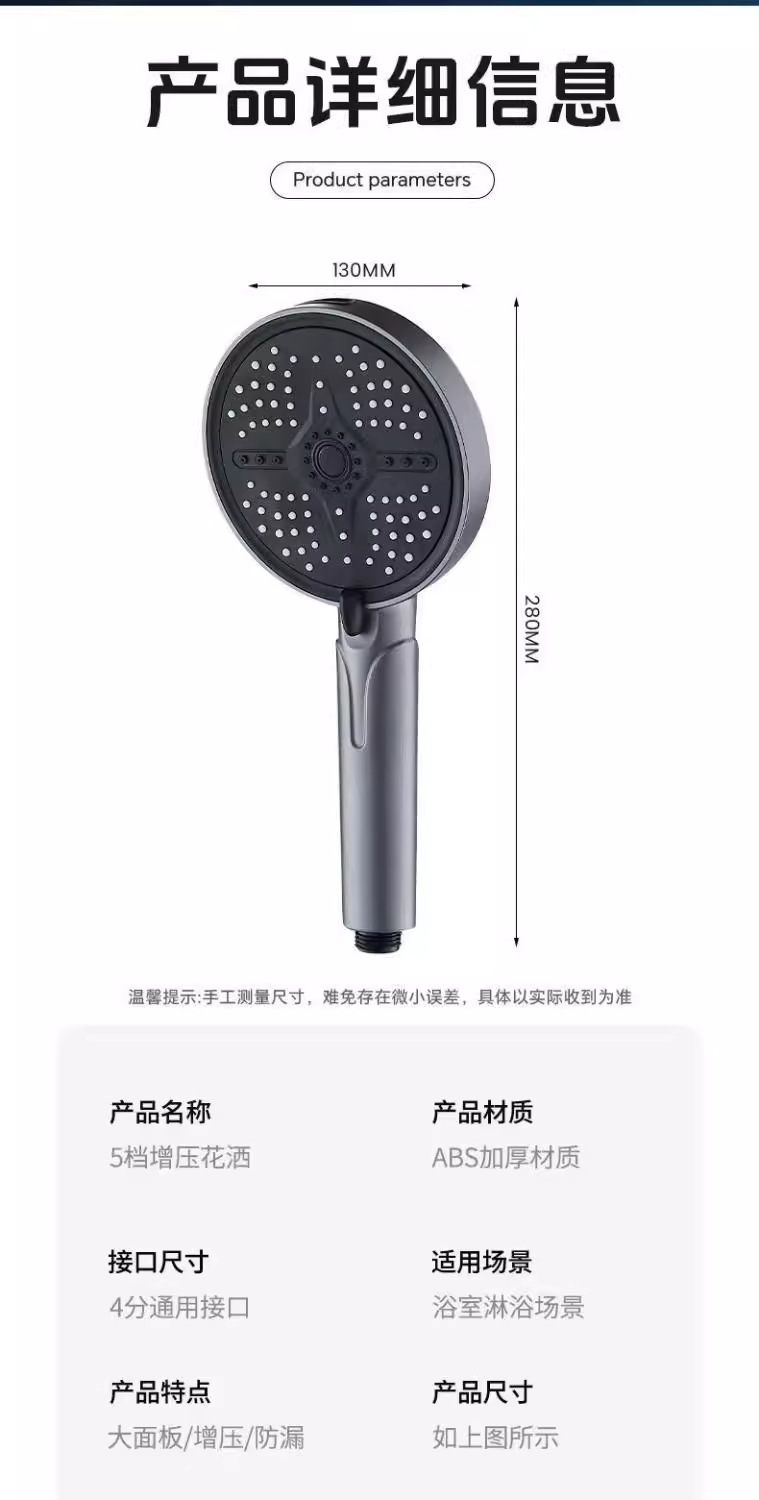 새로운 크로스보더 대형 패널 가압 샤워 헤드 5단 조절식 스프레이 건 샤워 헤드 가정용 목욕 휴대용 샤워 헤드스토어 가기