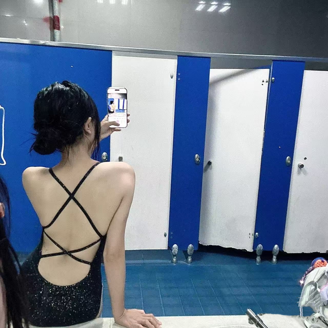 여성용 블랙 플래시 원피스 수영복, 전문 레이싱 수영장 특수 로우 포크 트라이앵글 빅 힙 수영복, 드롭 배송스토어 가기