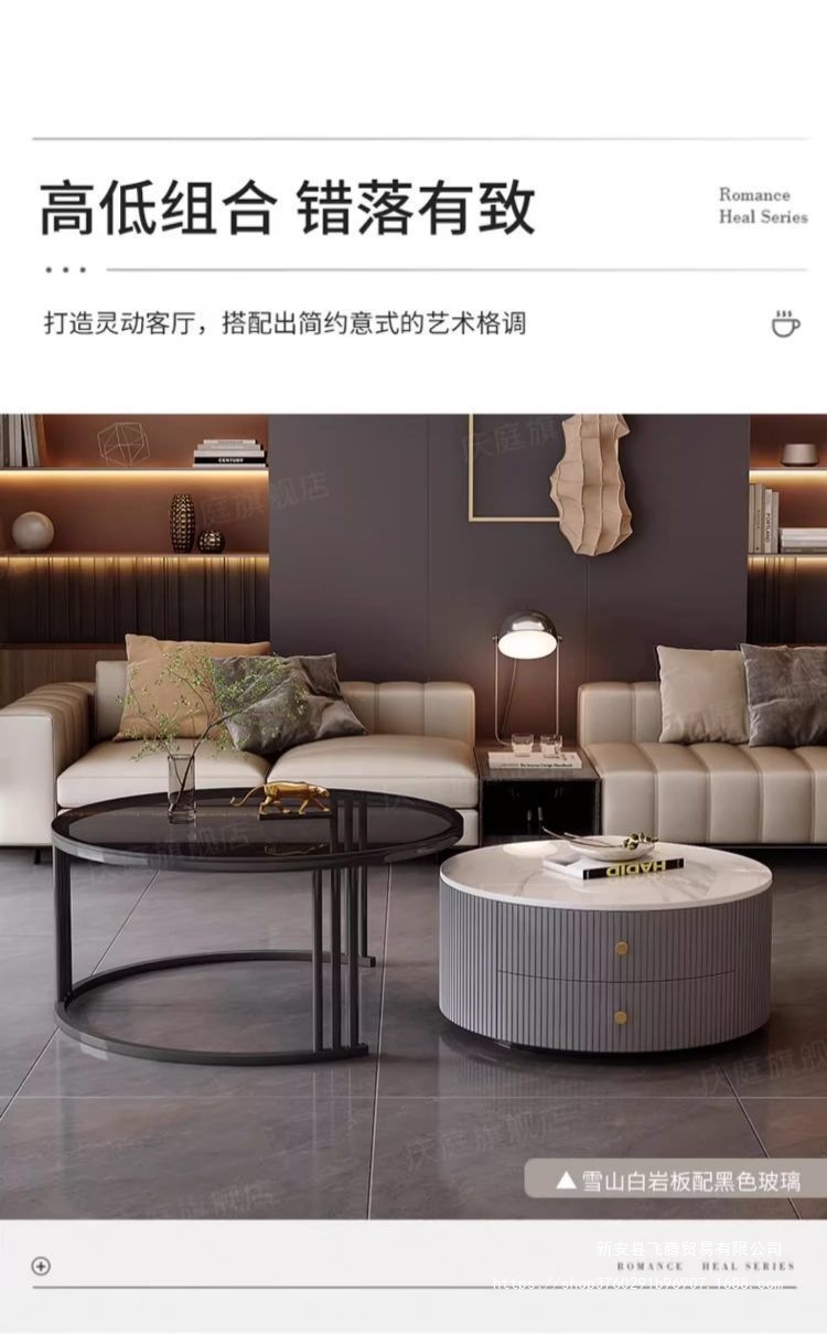 커피 테이블, 가볍고 고급스럽고 심플하고 현대적인 거실, 가정용 소형 북유럽 사이드 테이블, 대리석 석판, 원형 소형 커피 테이블스토어 가기