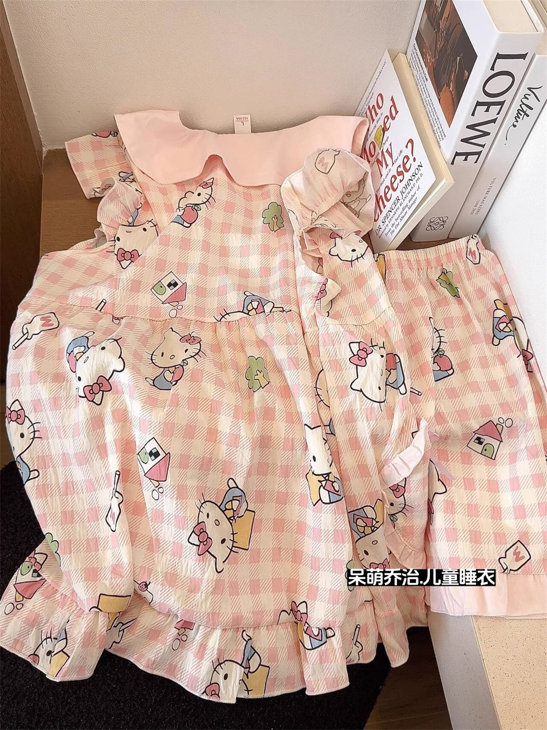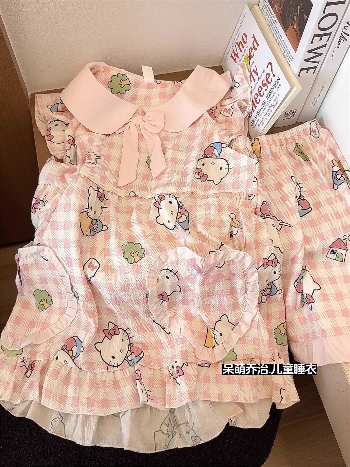 여자 민소매 잠옷 여름 얇은 어린이 구름 면화 만화 헬로 키티 정장 어린 소녀 가정 의류 여름 스타일스토어 가기