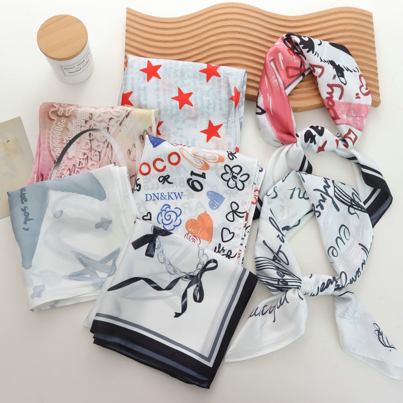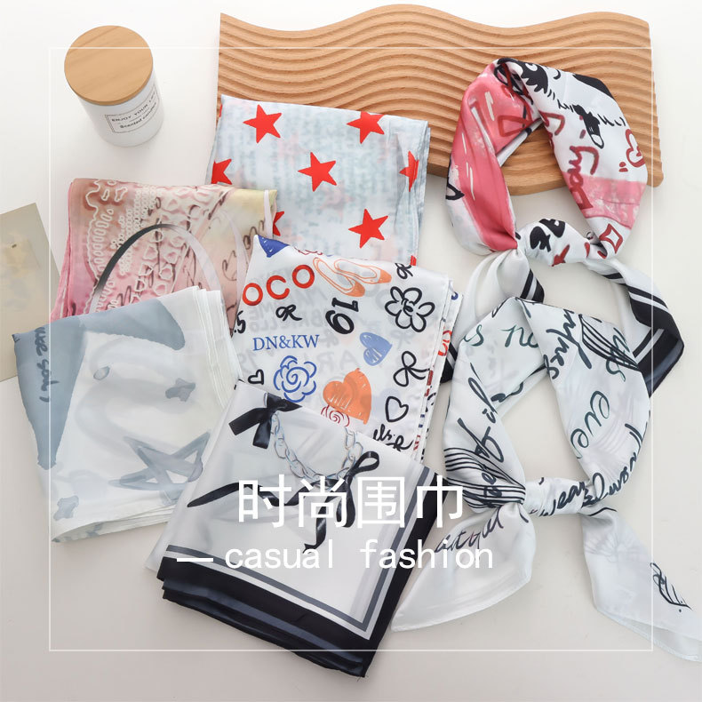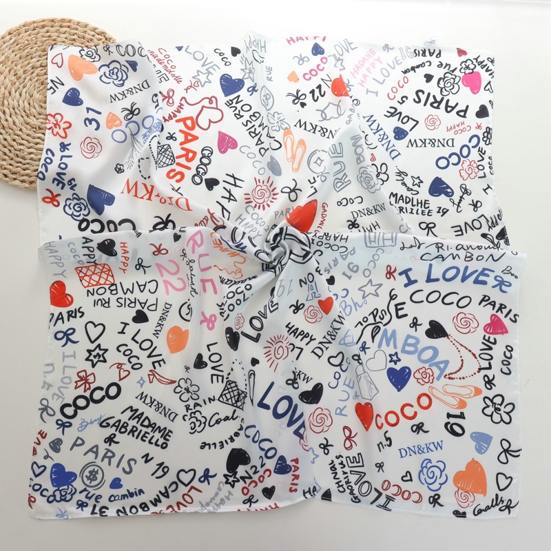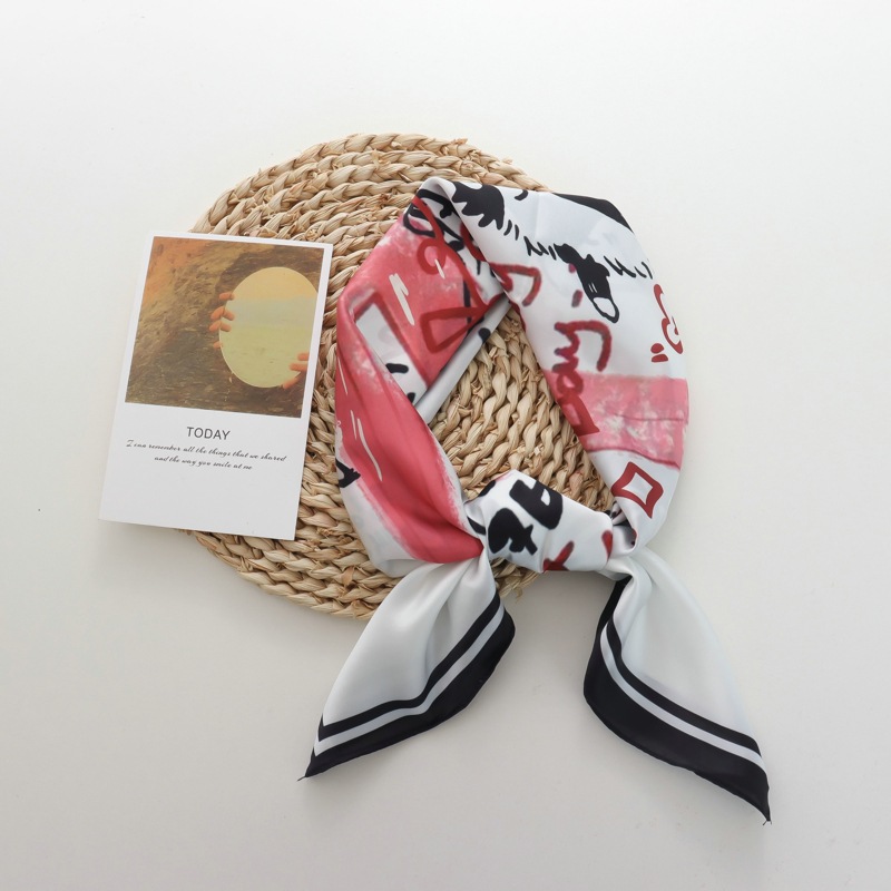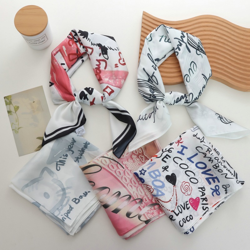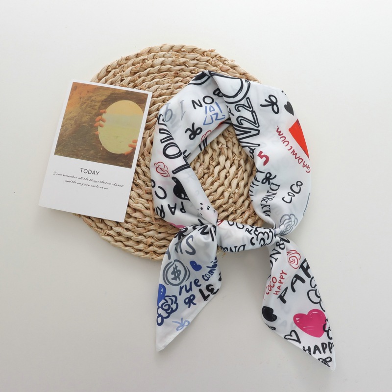 여성을위한 만화 컬러 낙서 스카프 2025 새로운 스타일 넥 타이 하이 엔드 스카프 얇은 튜브 탑 작은 사각형 스카프 장식 유행스토어 가기